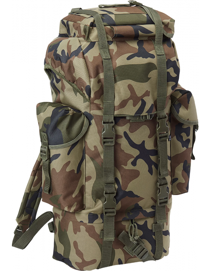 Tento robustní a velký vojenský batoh má objem až 65 litrů a má velké množství přihrádek pro maximální funkčnost. Prostorný hlavní oddíl rozšiřují oddíl na boty ve spodní části a pouzdro v horní části. Boky nabízejí dvě další přihrádky, vybavené vysoce kvalitními přezkami. Dva paralelní pásové popruhy s vysoce kvalitními klipsy stabilizují bojový batoh, zatímco polstrované a velikostně nastavitelné popruhy nabízejí schválené pohodlí při nošení. Vojenský batoh je vyroben z robustního nylonu odolného proti roztržení.