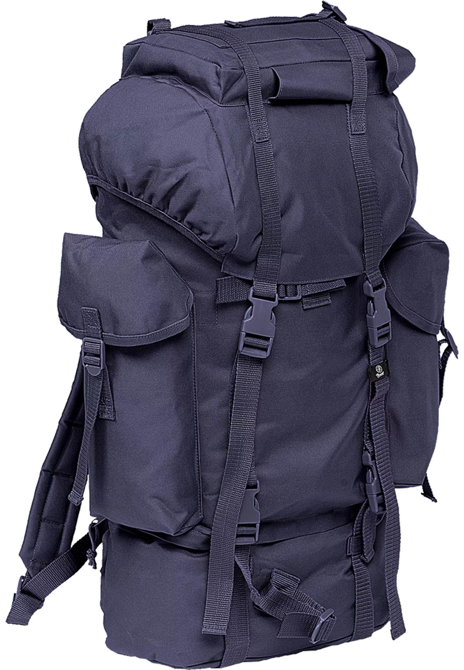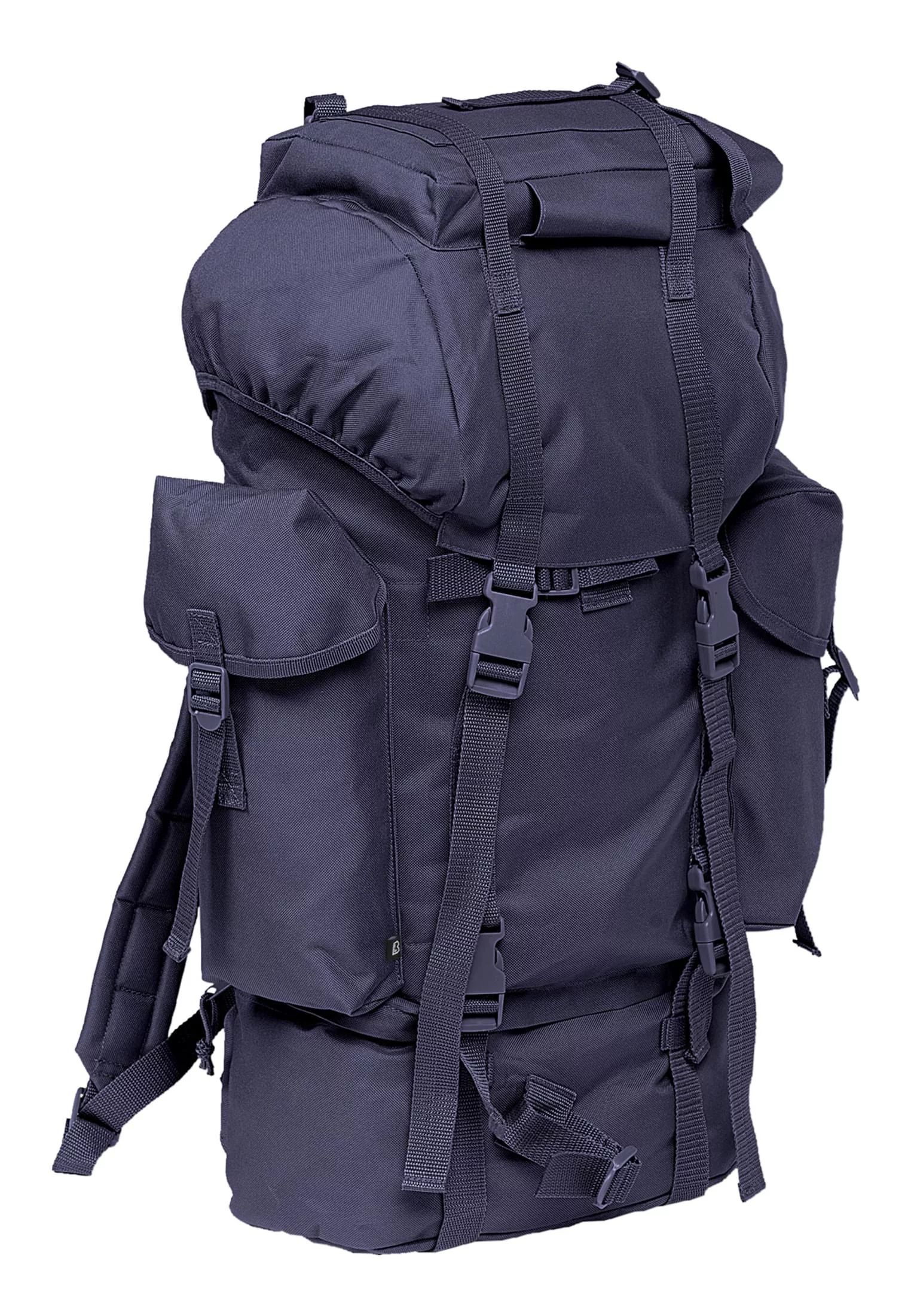 Tento robustní a velký vojenský batoh má objem až 65 litrů a má velké množství přihrádek pro maximální funkčnost. Prostorný hlavní oddíl rozšiřují oddíl na boty ve spodní části a pouzdro v horní části. Boky nabízejí dvě další přihrádky, vybavené vysoce kvalitními přezkami. Dva paralelní pásové popruhy s vysoce kvalitními klipsy stabilizují bojový batoh, zatímco polstrované a velikostně nastavitelné popruhy nabízejí schválené pohodlí při nošení. Vojenský batoh je vyroben z robustního nylonu odolného proti roztržení.