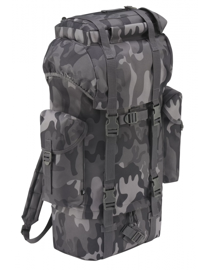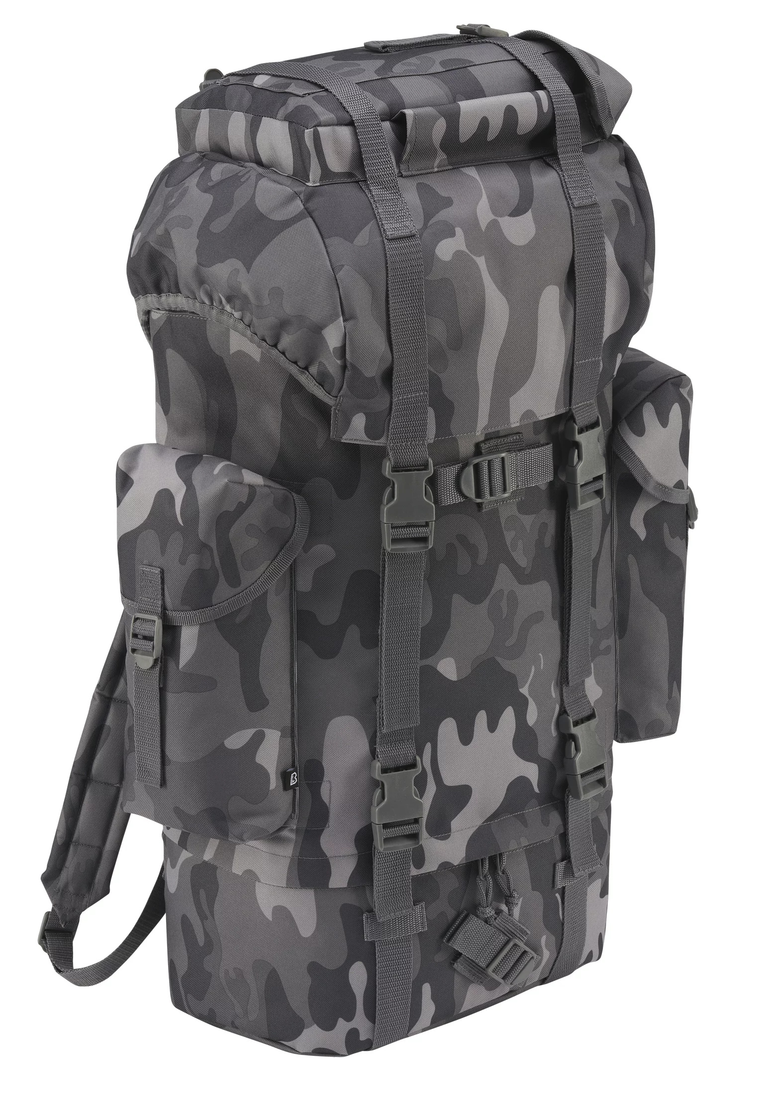 Tento robustní a velký vojenský batoh má objem až 65 litrů a má velké množství přihrádek pro maximální funkčnost. Prostorný hlavní oddíl rozšiřují oddíl na boty ve spodní části a pouzdro v horní části. Boky nabízejí dvě další přihrádky, vybavené vysoce kvalitními přezkami. Dva paralelní pásové popruhy s vysoce kvalitními klipsy stabilizují bojový batoh, zatímco polstrované a velikostně nastavitelné popruhy nabízejí schválené pohodlí při nošení. Vojenský batoh je vyroben z robustního nylonu odolného proti roztržení.