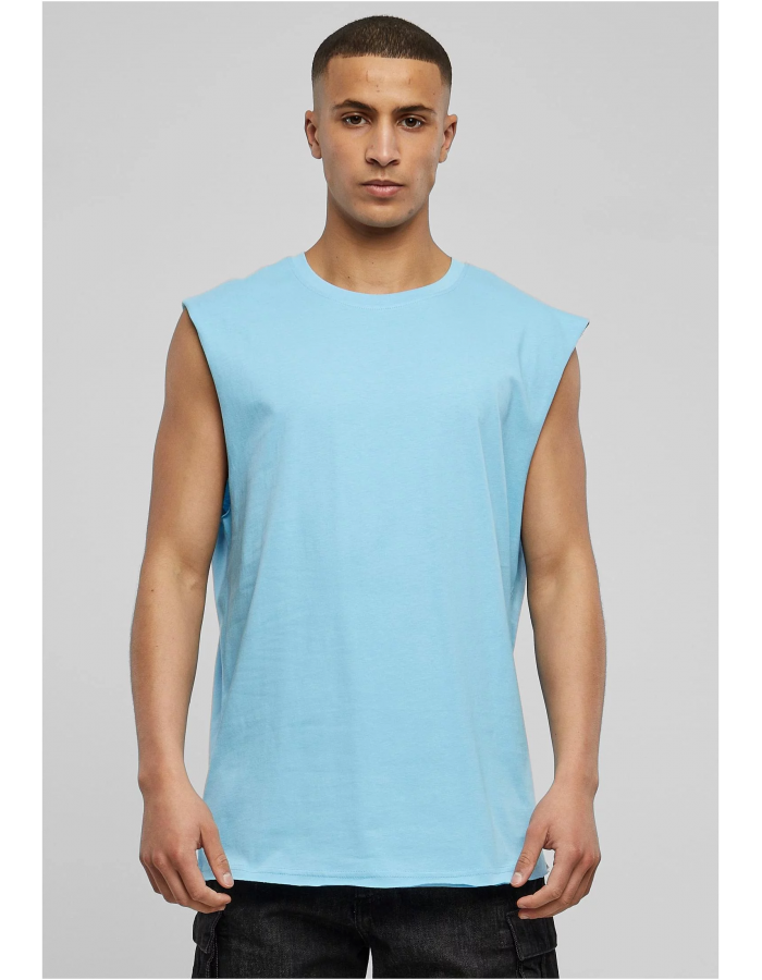 Baltické modré tričko bez rukávů s otevřeným okrajem