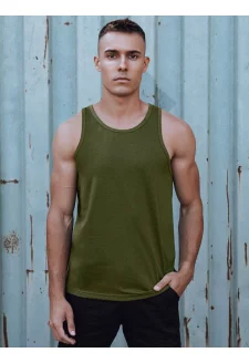 Olivové tričko bez rukávů s otevřeným okrajem
