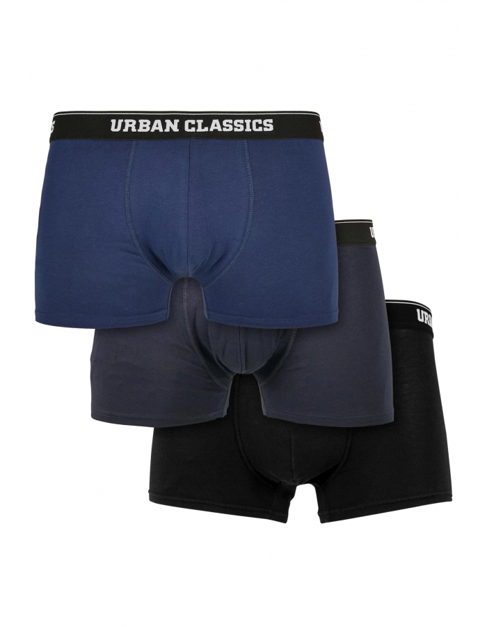 Tyto pánské boxerky v balení po třech kombinují to nejlepší z pohodlí nošení a každodenního vzhledu. Vyrábějí se v barvách černá, bílá a modrá a mají další značku. Všechny tři boxerky nabízejí pohodlný elastický pas s okolním nápisem Urban Classics a mají pravidelný střih. Pánské spodní prádlo vyrobené z organické bavlny šetrné k pokožce.