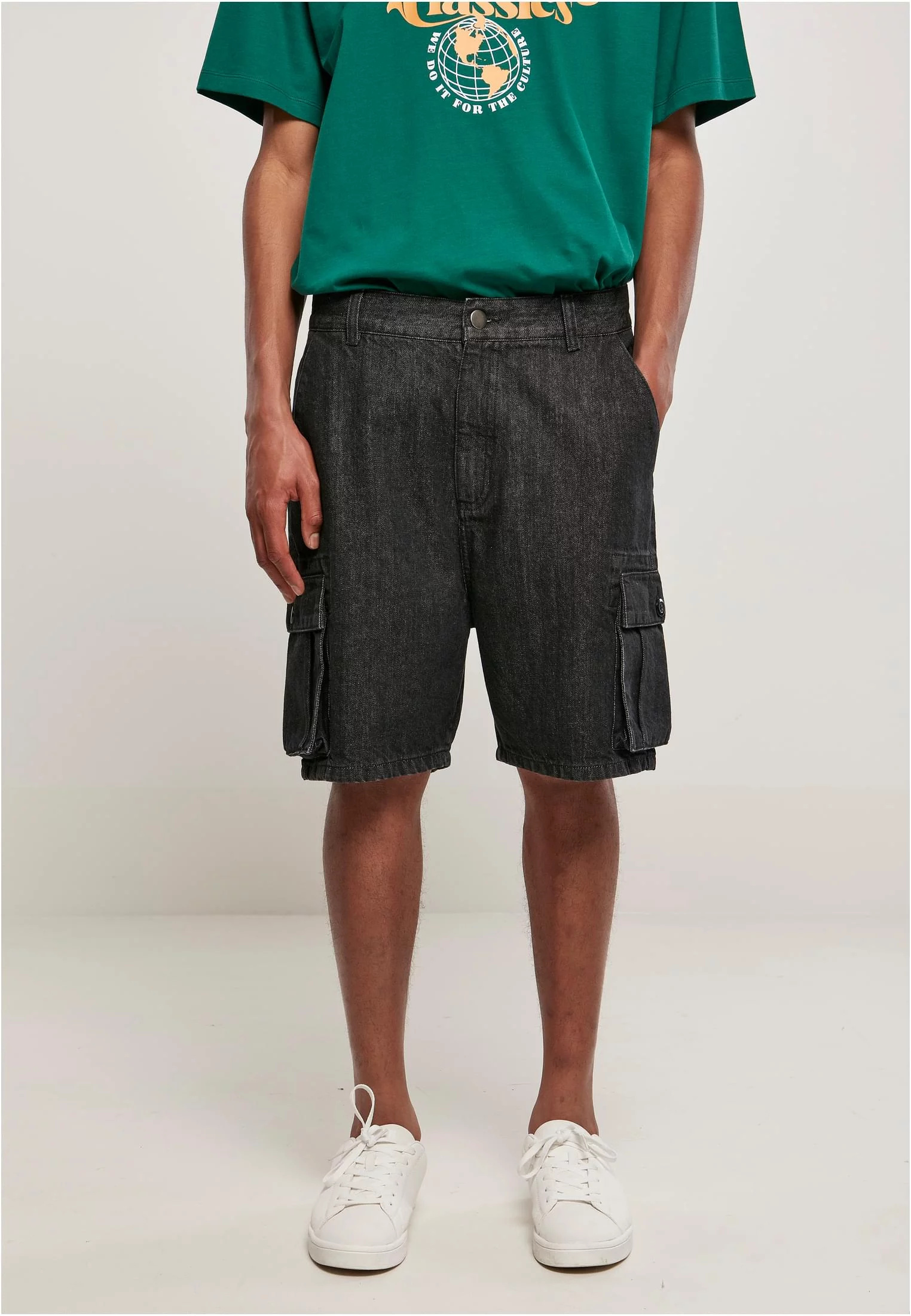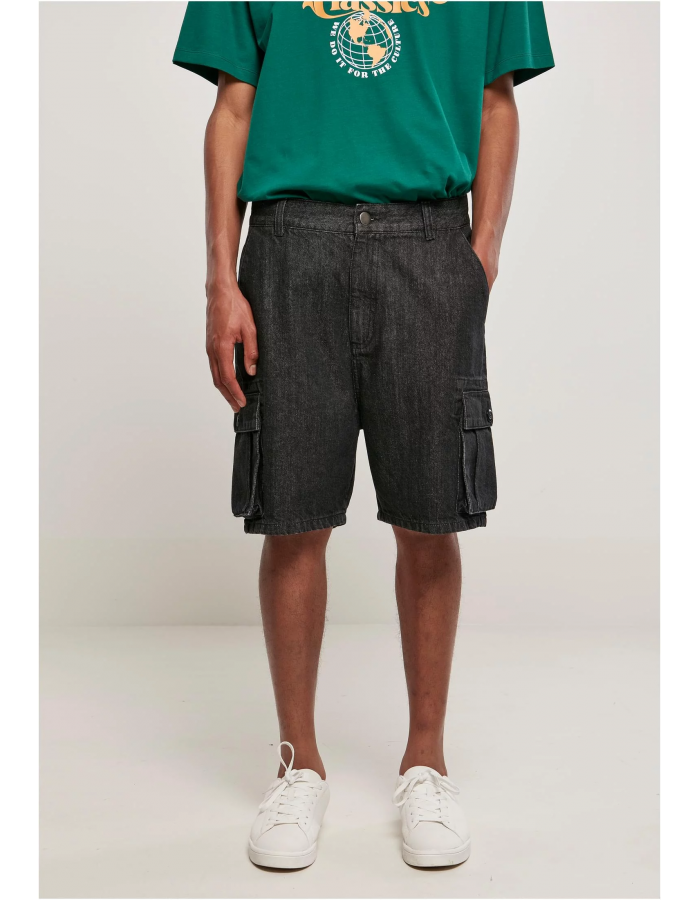 Klasické pánské džínové šortky, které zdařile splynou s cargo kalhotami – dvě velké cargo kapsy s lemy se zapínají na knoflíky. Postranní kapsy i integrované zadní kapsy dotvářejí styl uvolněným a praktickým způsobem. Pánské cargo šortky mají délku po kolena a pravidelný střih. Jsou vyrobeny z 50% organické bavlny.