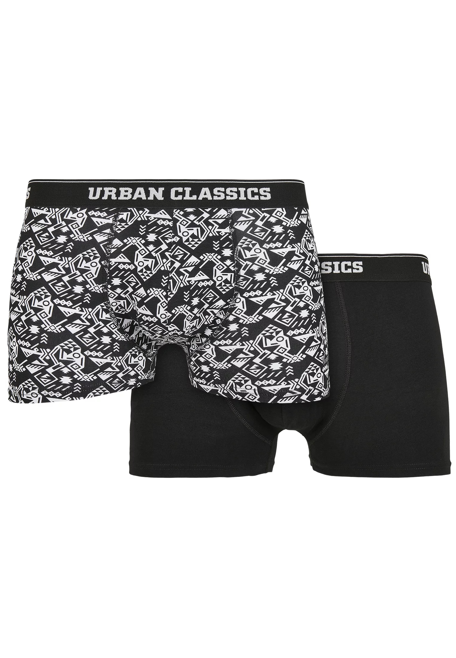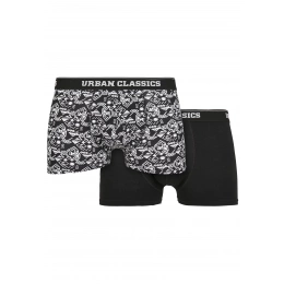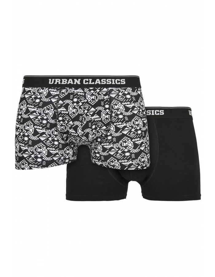 Balíček boxerek Urban Classics dva v jednom obsahuje výběr funkčního pánského spodního prádla v barvách černá, bílá a červená. Vzory boxerek naznačují extravagantní potisky a jednolité uni barvy. Všechny boxerky mají elastický pas s logem Urban Classics. Jemný strečový žerzejový materiál zajišťuje optimální pohodlí při nošení a hladké a bezpečné uchycení.