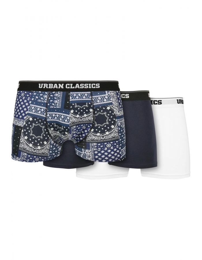 Tyto pánské boxerky v balení po třech kombinují to nejlepší z pohodlí nošení a každodenního vzhledu. Vyrábějí se v barvách černá, bílá a modrá a mají další značku. Všechny tři boxerky nabízejí pohodlný elastický pas s okolním nápisem Urban Classics a mají pravidelný střih. Pánské spodní prádlo vyrobené z organické bavlny šetrné k pokožce.