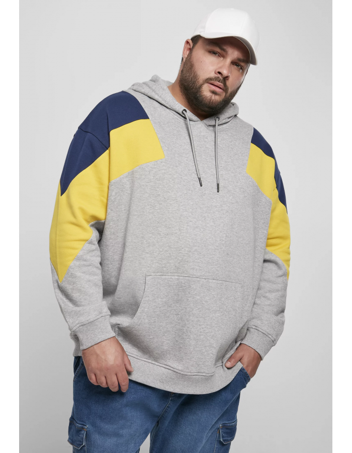 Díky neformálním spadlým ramenům, měkké teplákovině, pohodlné kapuci a žebrovaným manžetám je 3-tónová kapuce extra pohodlná. Ležérní vzhled vychází ze širokých blokových proužků vložených na ramena, které se zužují směrem k pažím a vytvářejí stylový kontrast.