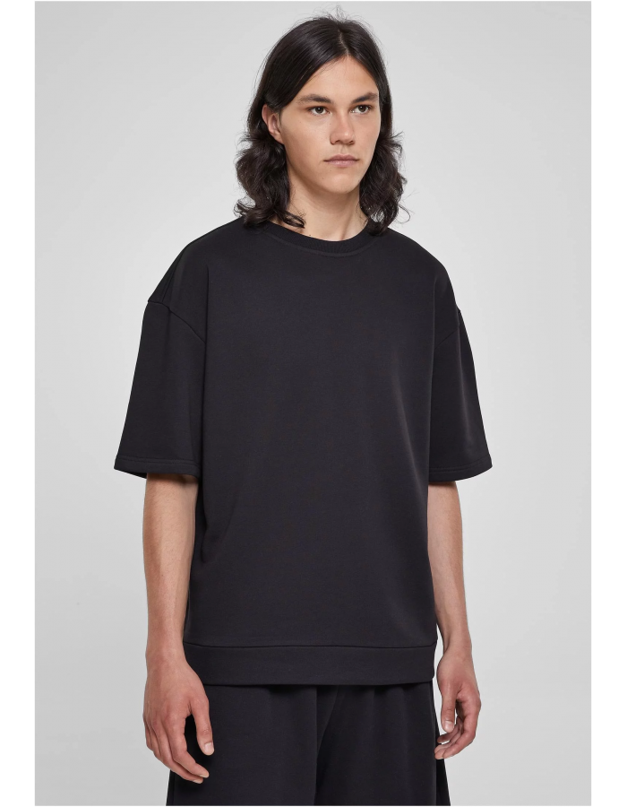 Pánská mikina s krátkým rukávem je vybavena žebrovaným výstřihem a širokým žebrovaným lemem pro sportovní i ležérní vzhled. Oversize střih s velkoryse spadlými rameny podtrhuje styl. Mikina je vyrobena ze spolehlivé bavlněné tkaniny šetrné k pokožce.