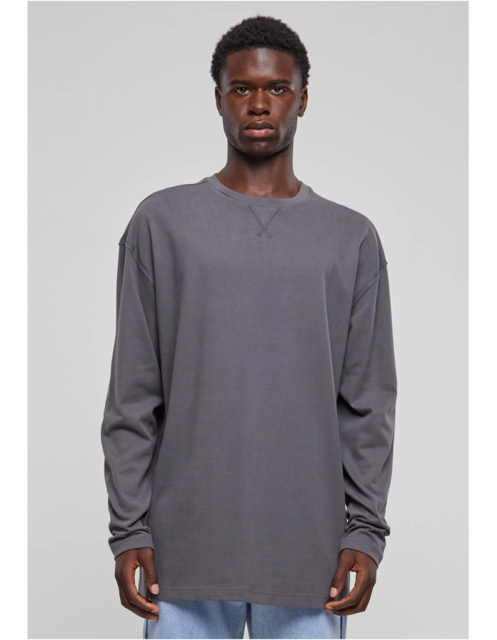 Pánský dlouhý rukáv nabízí pohodlný oversize střih se spadlými rameny. Mimochodem, šev mezi rukávy a rameny je otočený ven a harmonicky dotváří styl. Pánský dlouhý rukáv je vyroben z hladké žerzejové bavlny.