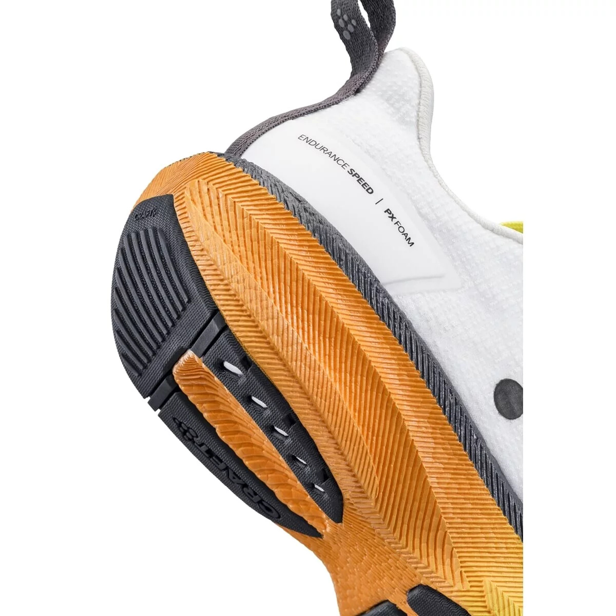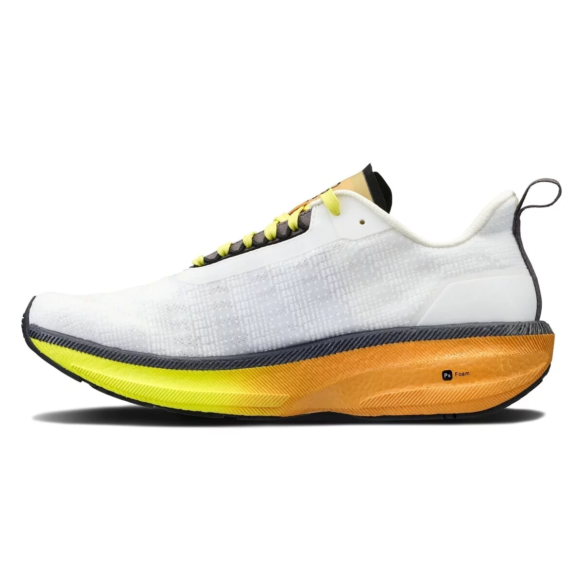 Agresivní geometrie, vysoká vrstva tlumení a především pěna PX s nekompromisní energetickou návratností. Tenhle koktejl zajistí maximální komfort a dokonale plynulý a rychlý přechod do odrazu.