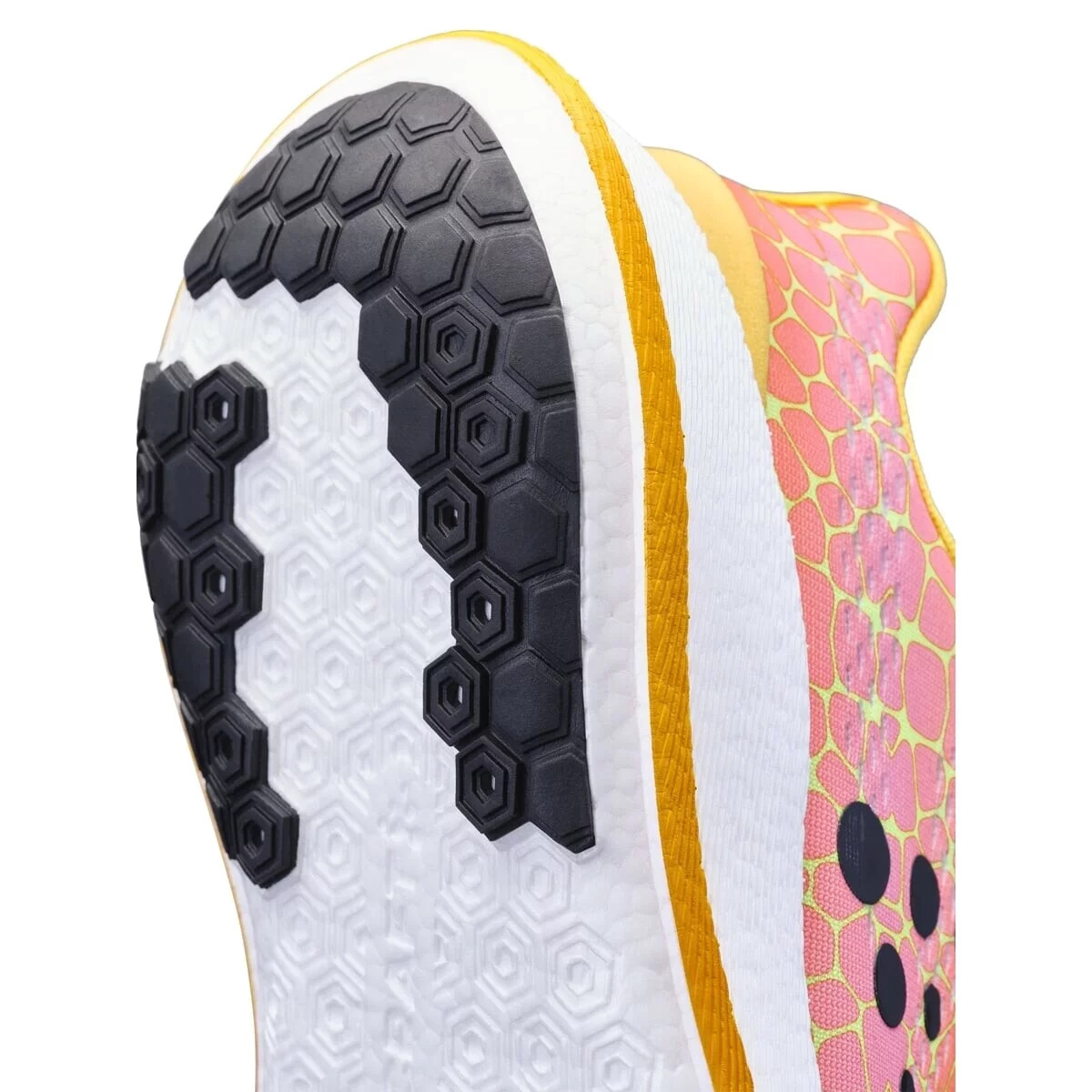 Nekompromisní měkkost a pružnost tlumící vrstvy se postará o to, že se při běhu budeš cítit jako v bavlnce. Široká základna zajistí skvělou stabilitu a bezešvý svršek dokonale obepne chodidlo.
