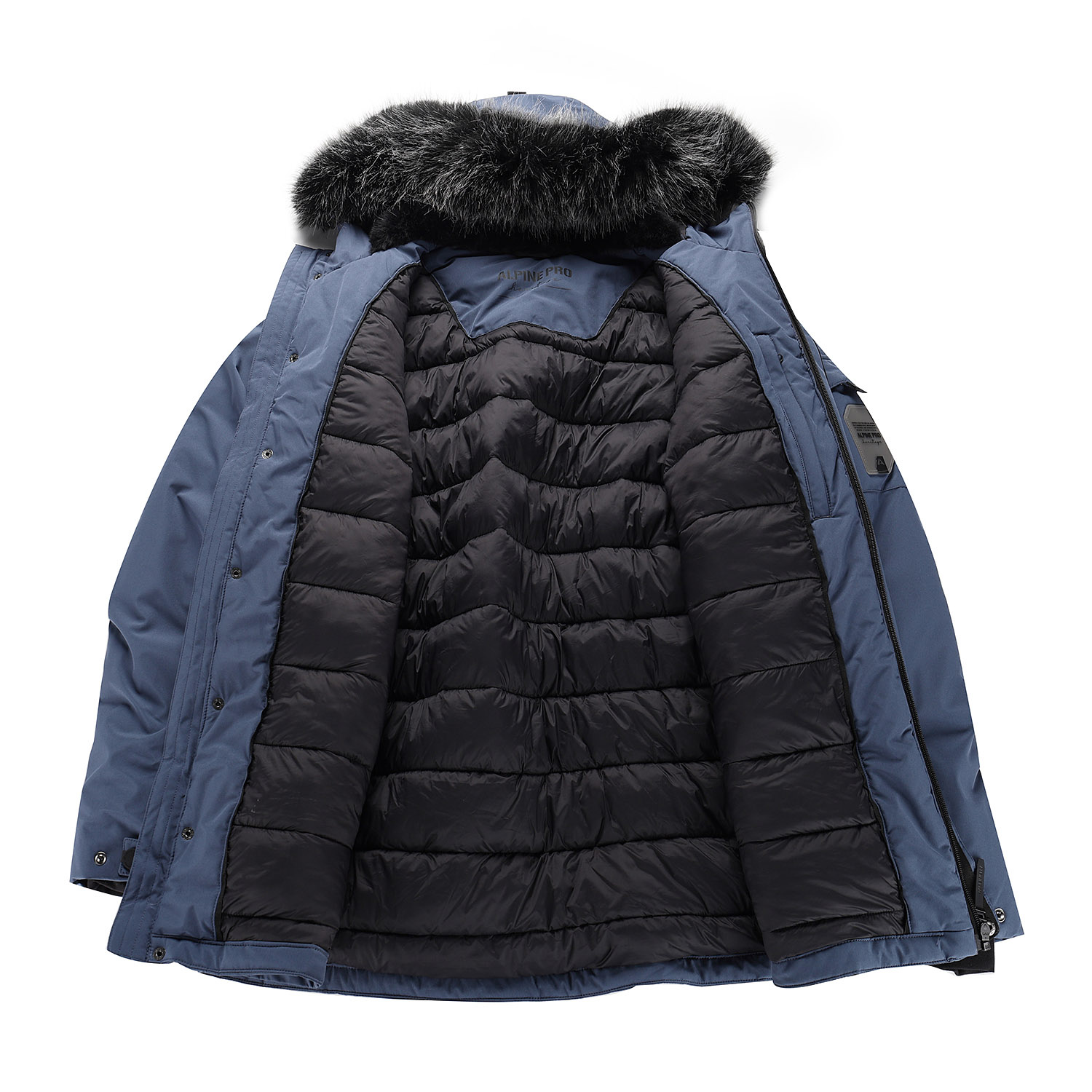 Bunda je navržena v oblíbeném nadýchaném stylu, má pohodlný polopřiléhavý střih a dekorativní prošití, díky čemuž působí atraktivně a zároveň sportovně. Nechybí pevná kapuce s odepínatelnou kožešinou, reflexní prvky pro vyšší bezpečnost ani výrazné logo ALPINE PRO. Materiál bundy dosahuje vodního sloupce 3 000 mm a paropropustnosti 3 000 g/m²/24 h.