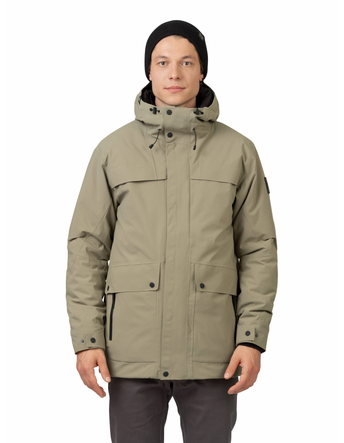 Zimní parka kabát odolává dešti, sněhu i větru díky membráně Resstex 5000 a svrchní vodoodpudivé DWR úpravě. Izolaci zajistí kvalitní polyesterové rouno Duratherm High Loft, které je lehké, nadýchané, měkké a vyniká termoizolačními vlastnostmi. Speciální technologie plnění HL TECH Downlike zajišťuje optimální rozprostření a fixaci výplně. Výhodou je vysoká plnivost, výborné termoregulační vlastnosti a bunda je navíc pocitově i vizuálně podobná péřovce. Kabát má dvě dvojité měchové kapsy kryté patkou s drukem a dvě kapsy s voděodolným zipem. Hlavní kostěný zip je krytý légou, pod kterou je umístěna jedna náprsní kapsa na zip. Díky tomu je tak velmi dobře přístupná i bez nutnosti rozepnutí zipu bundy. Rukávy jsou zakončené vnitřní manžetou a lze je stáhnout patkou s drukem. Vhodný pro každodenní nošení.