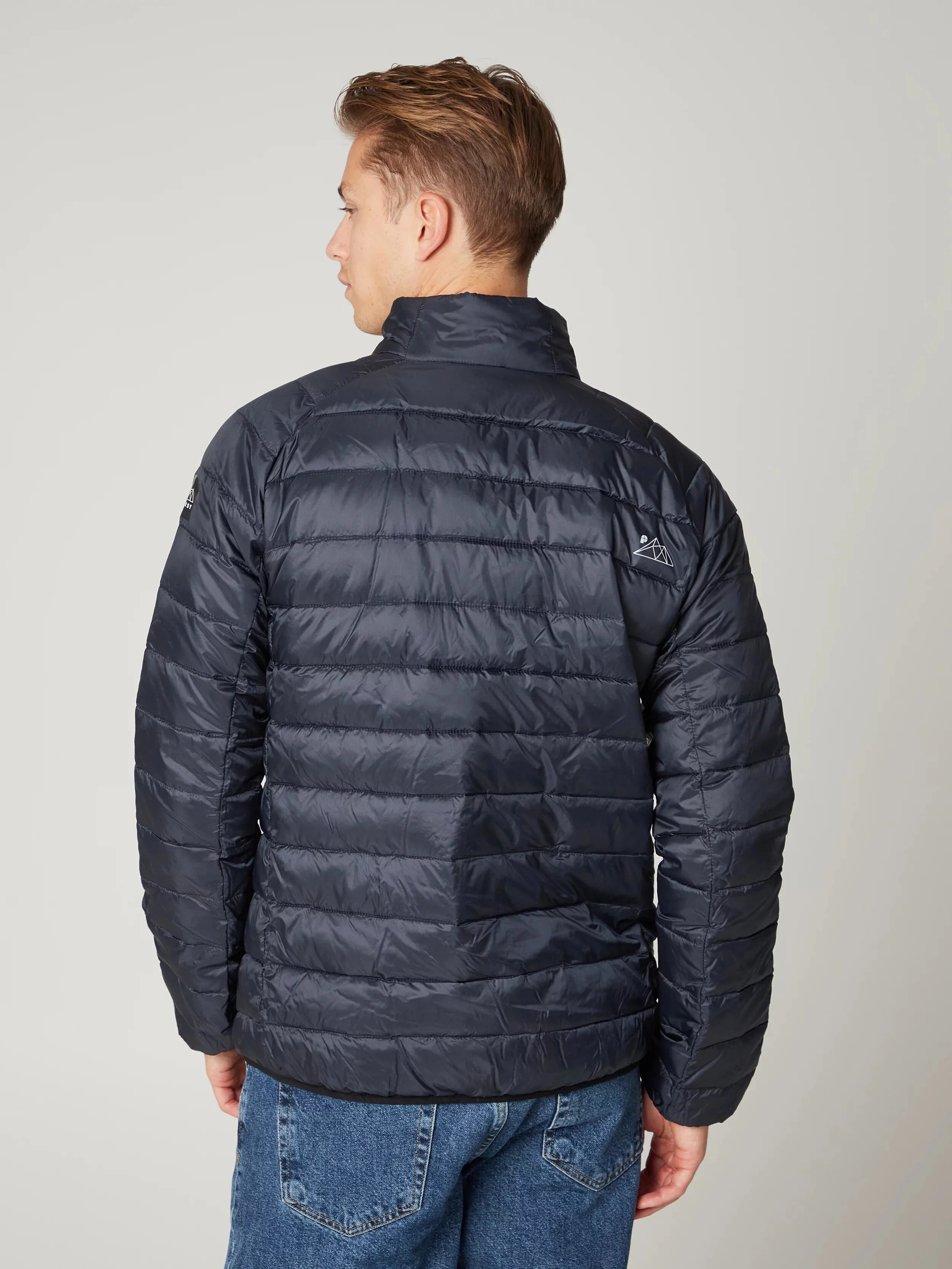 Tato prošívaná bunda má vysoký límec a kapsy na zip.