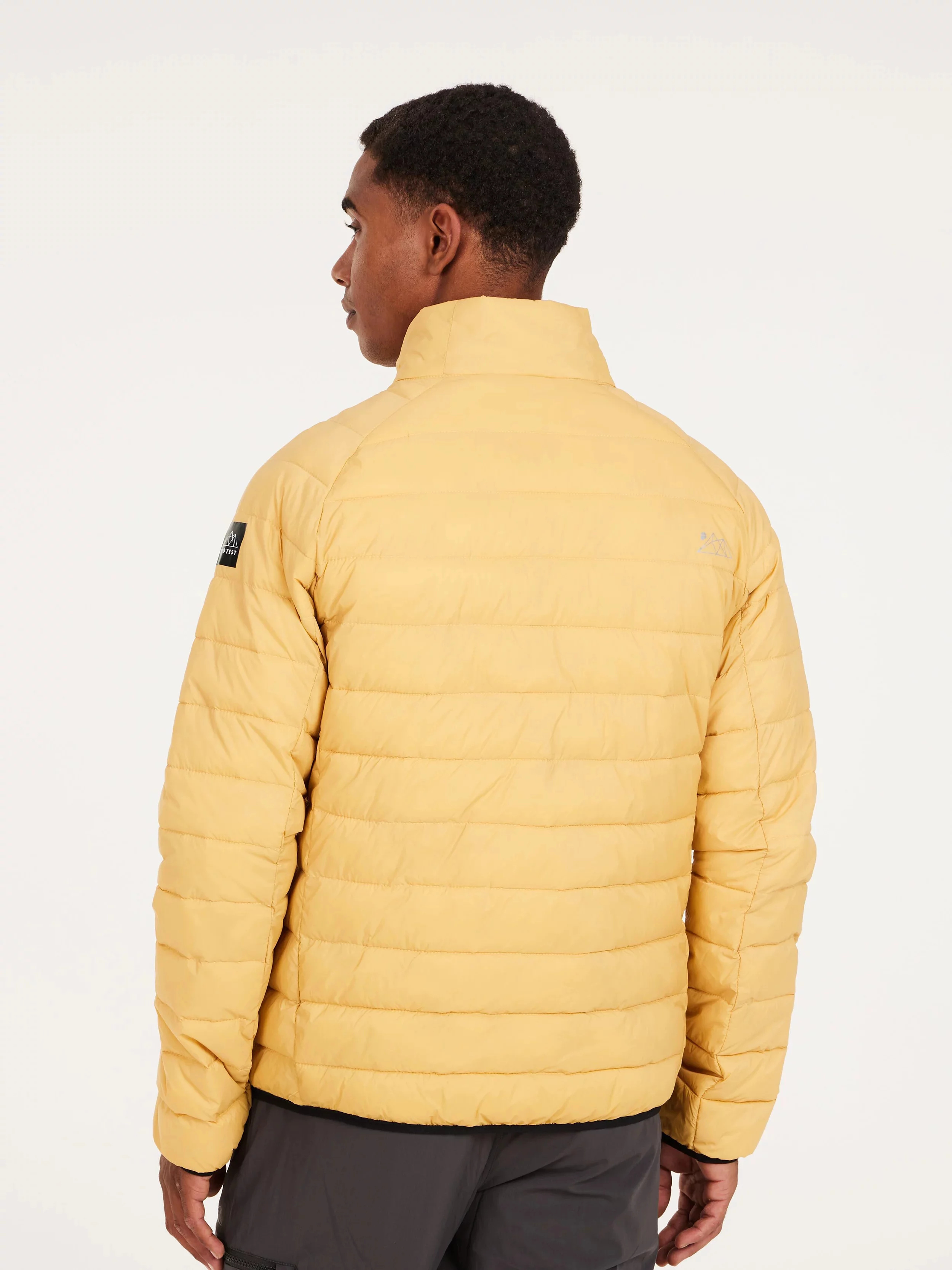 Tato prošívaná bunda má vysoký límec a kapsy na zip.