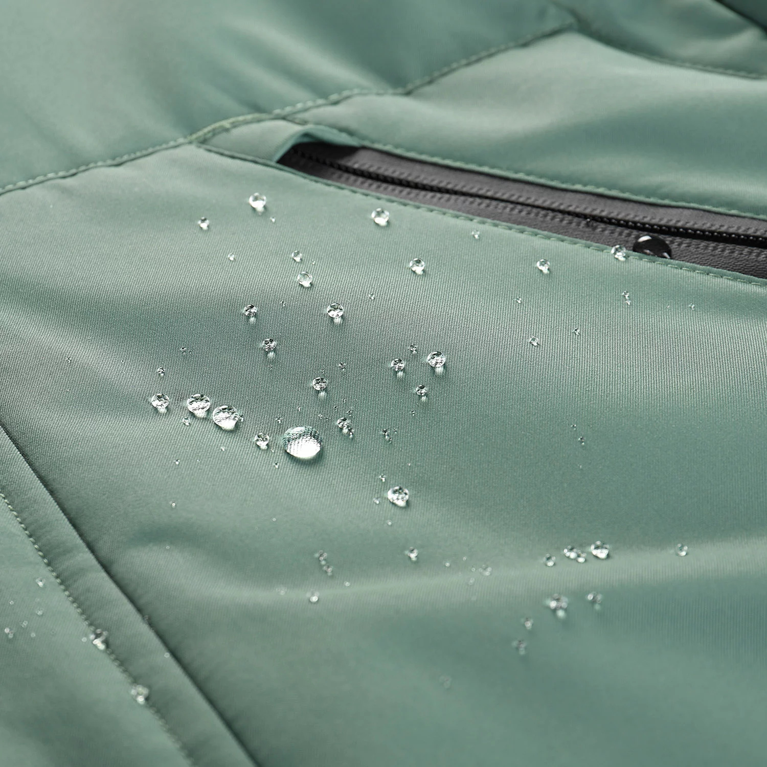 Materiál s DWR (Durable Water Repellency) úpravou má speciálně nanesenou vodoodpudivou vrstvu. Dopadající vlhkost (voda, sníh) vytváří drobné kapičky, které okamžité odtékají z povrchu materiálu pryč. Díky této DWR úpravě zůstává oblečení déle suché i při nepříznivém počasí.