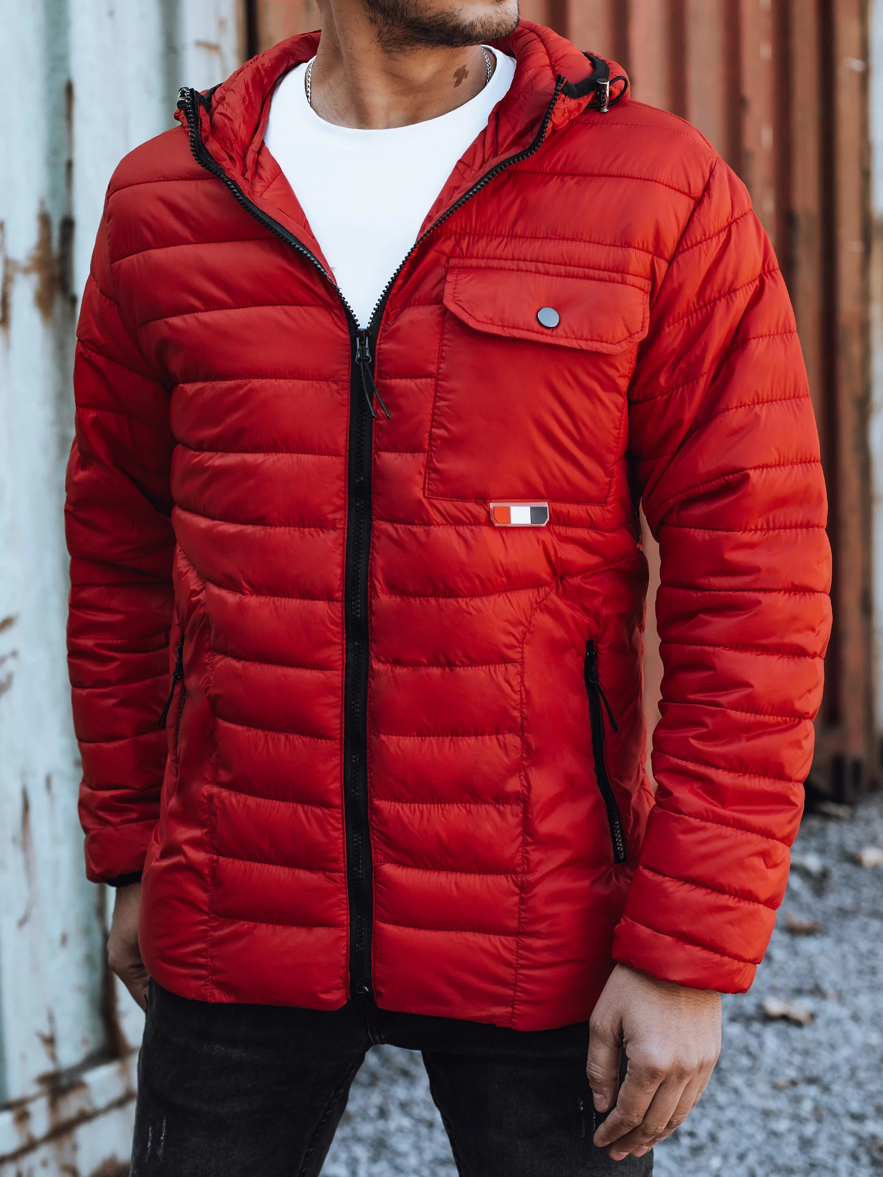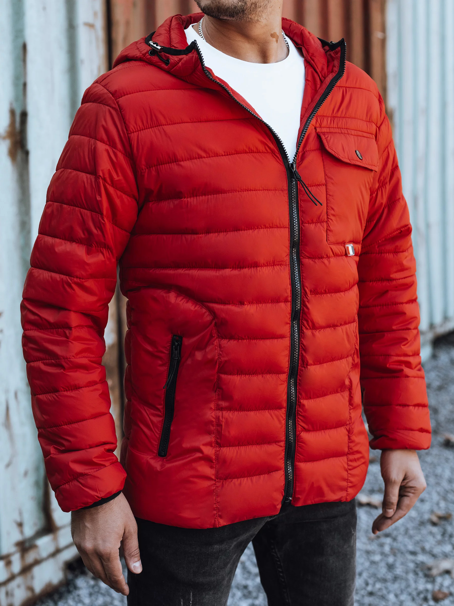 - Pánská přechodová bunda, prošívaná s kapucí.