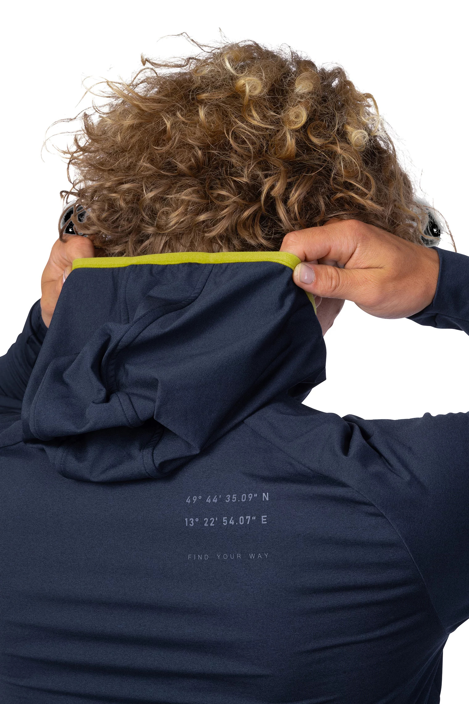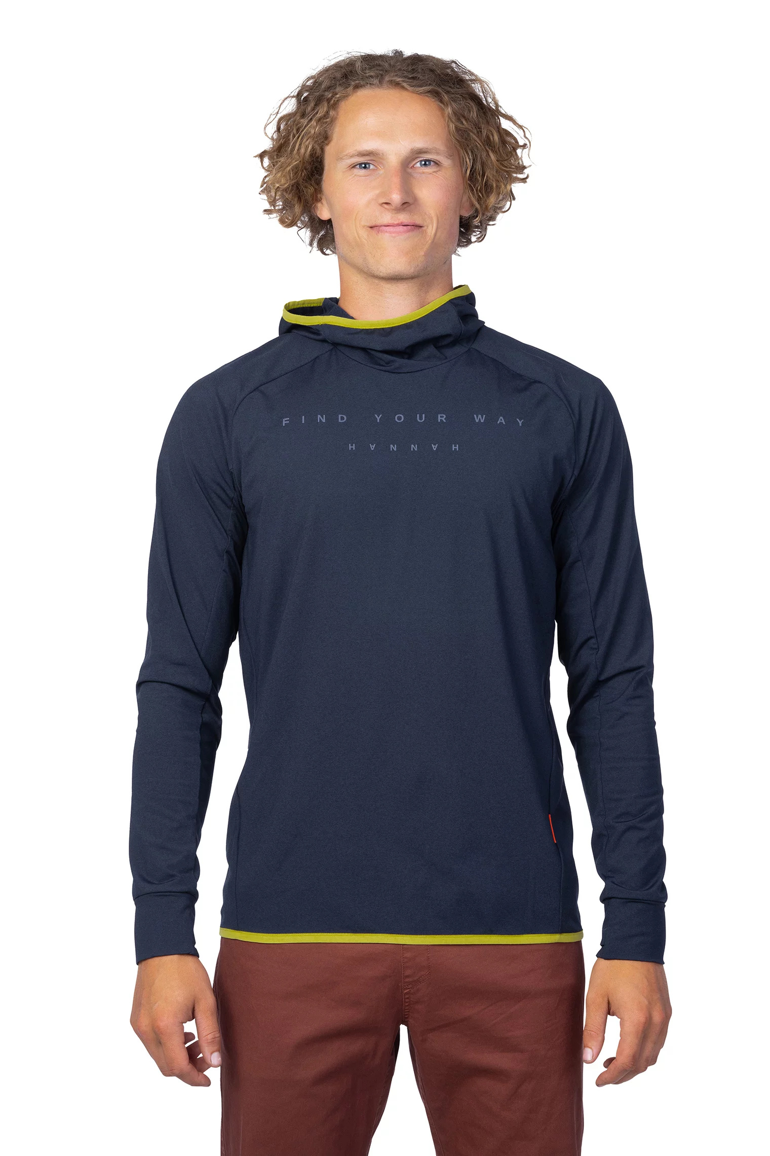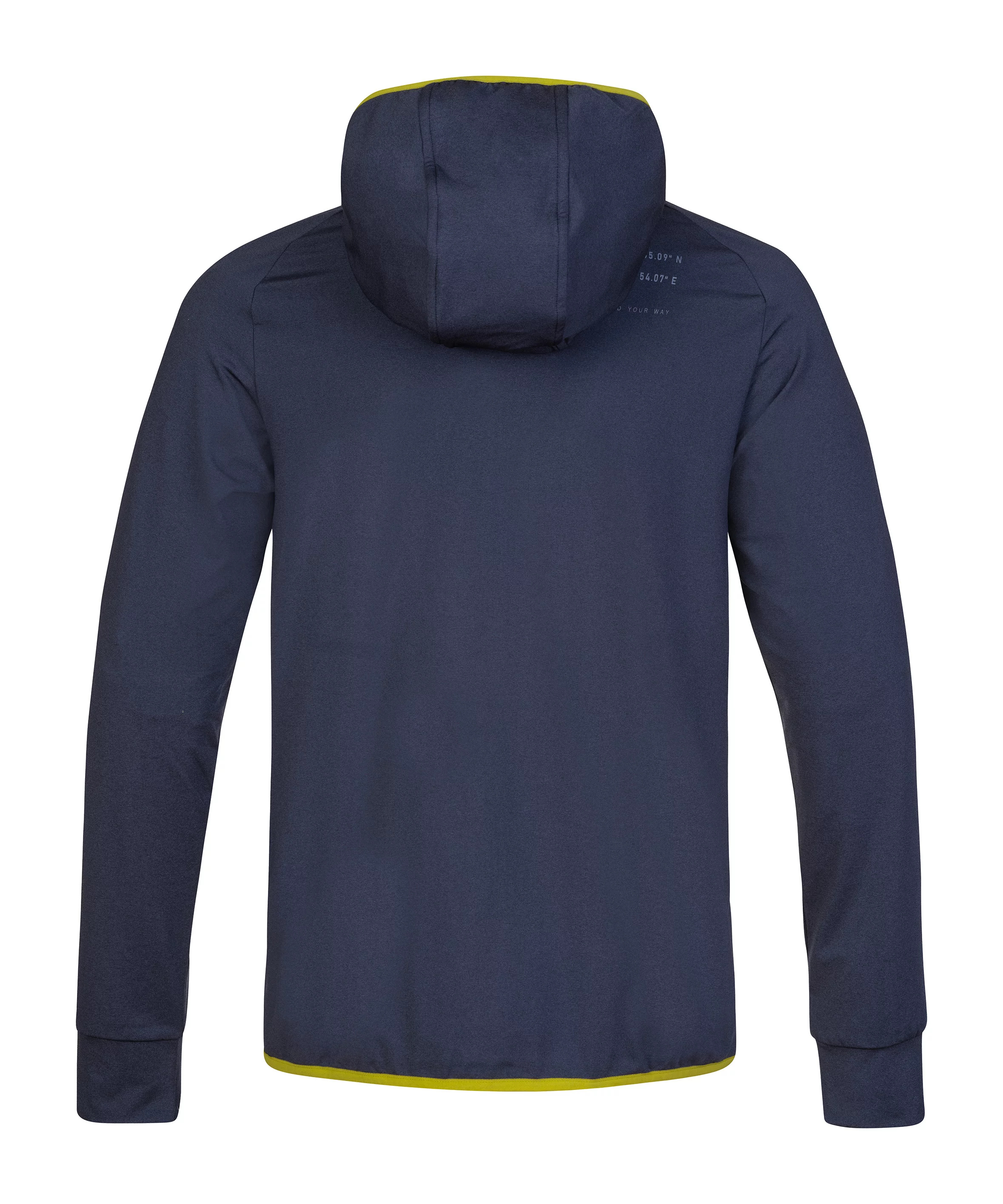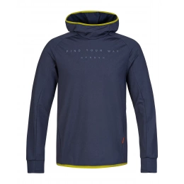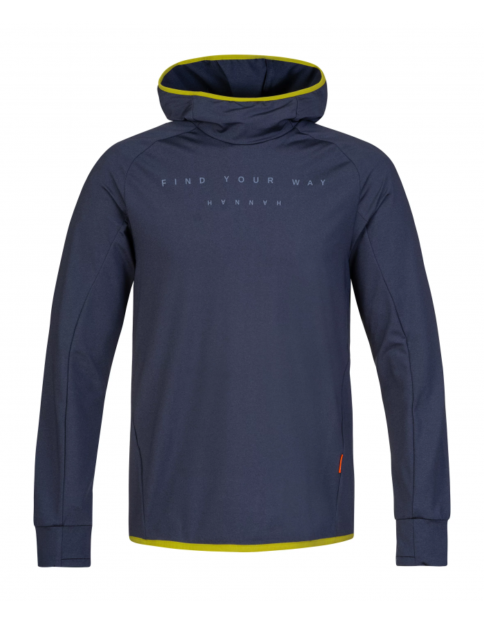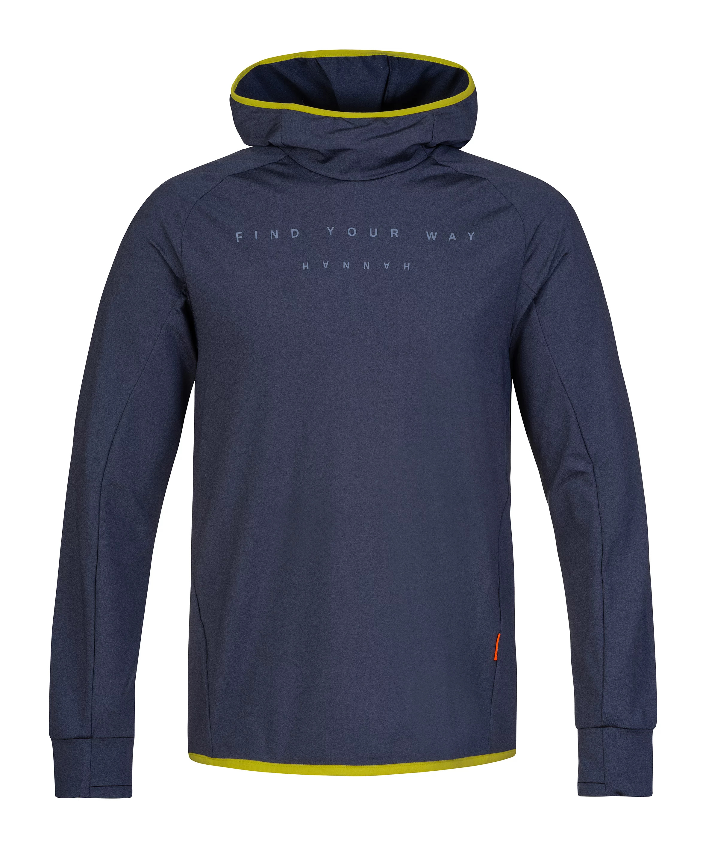 Sportovní střihově volnější mikina s technickými prvky. Materiál Polarstretch Lite je prodyšný, vysoce elastický ve všech směrech a lehký. Snadno se udržuje, rychle schne a má dlouhotrvající životnost včetně vysoké mechanické odolnosti. Širší stojáček kolem krku volně přechází do kapuce lemované gumou. Anatomicky tvarované rukávy jsou zakončené pružným lemem s otvorem na palec. Na zadní straně mikiny najdeš souřadnice domovského sídla Hannah, kde se rodí všechny naše nápady a styly, které tě provázejí na každém kroku. Mikina je ideální jako druhá izolační vrstva pro přechodné období outdoorových a sportovních aktivit.