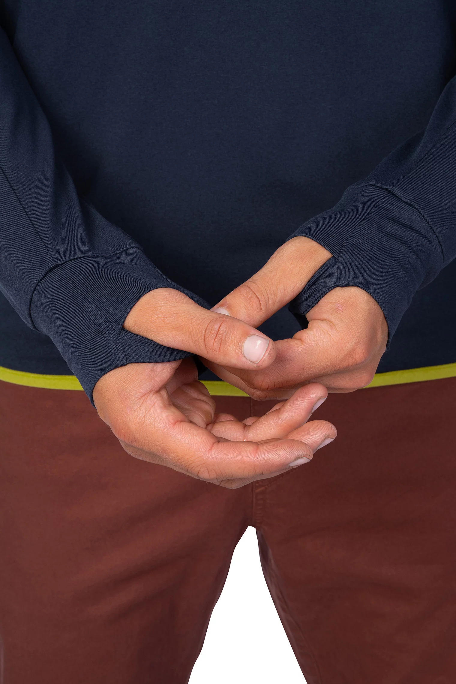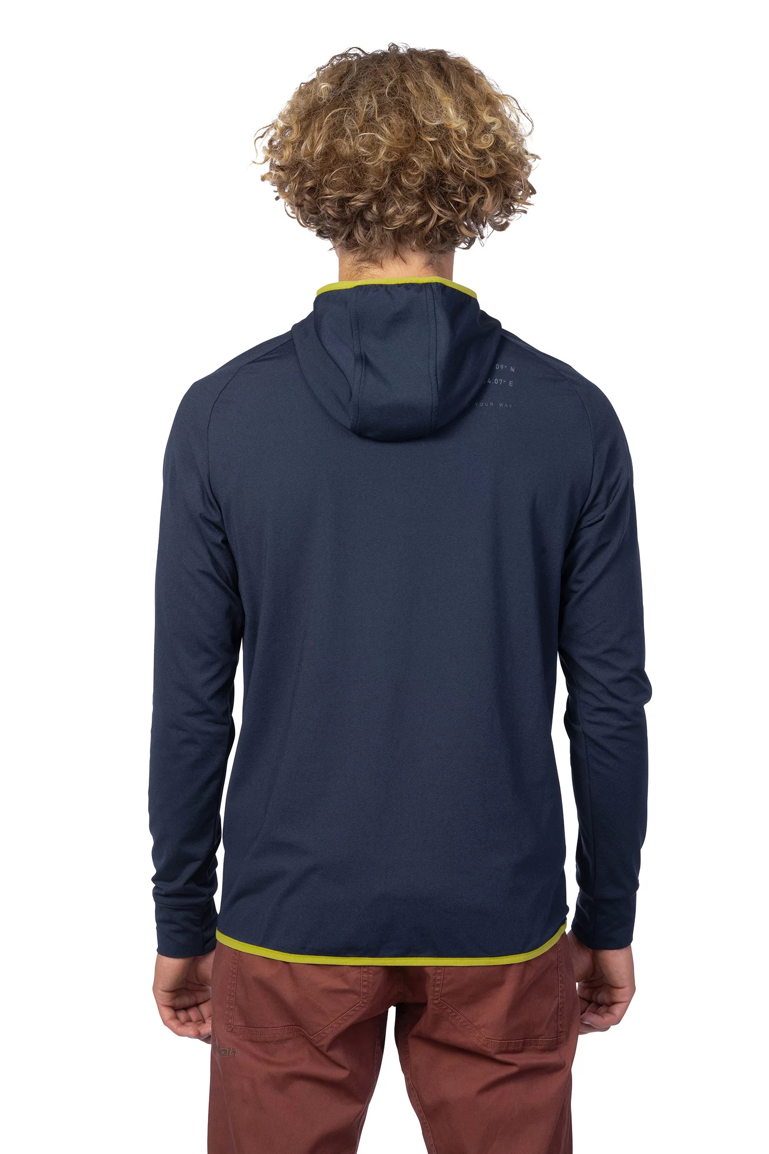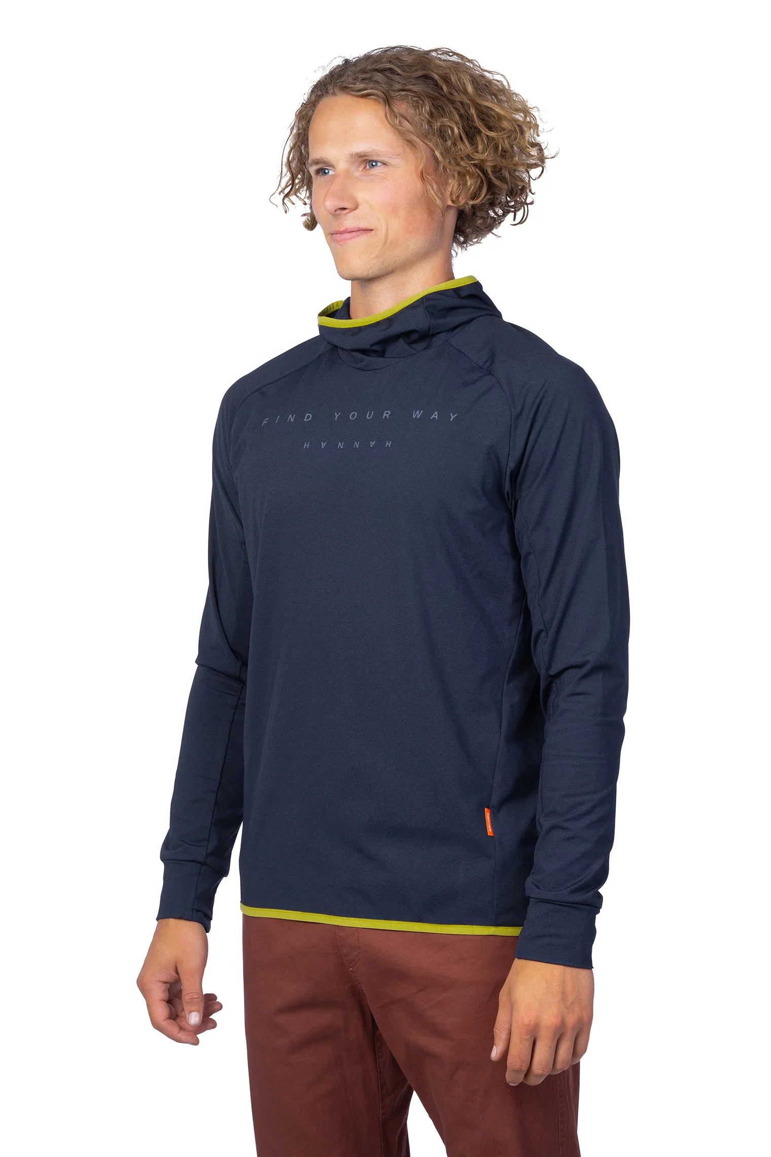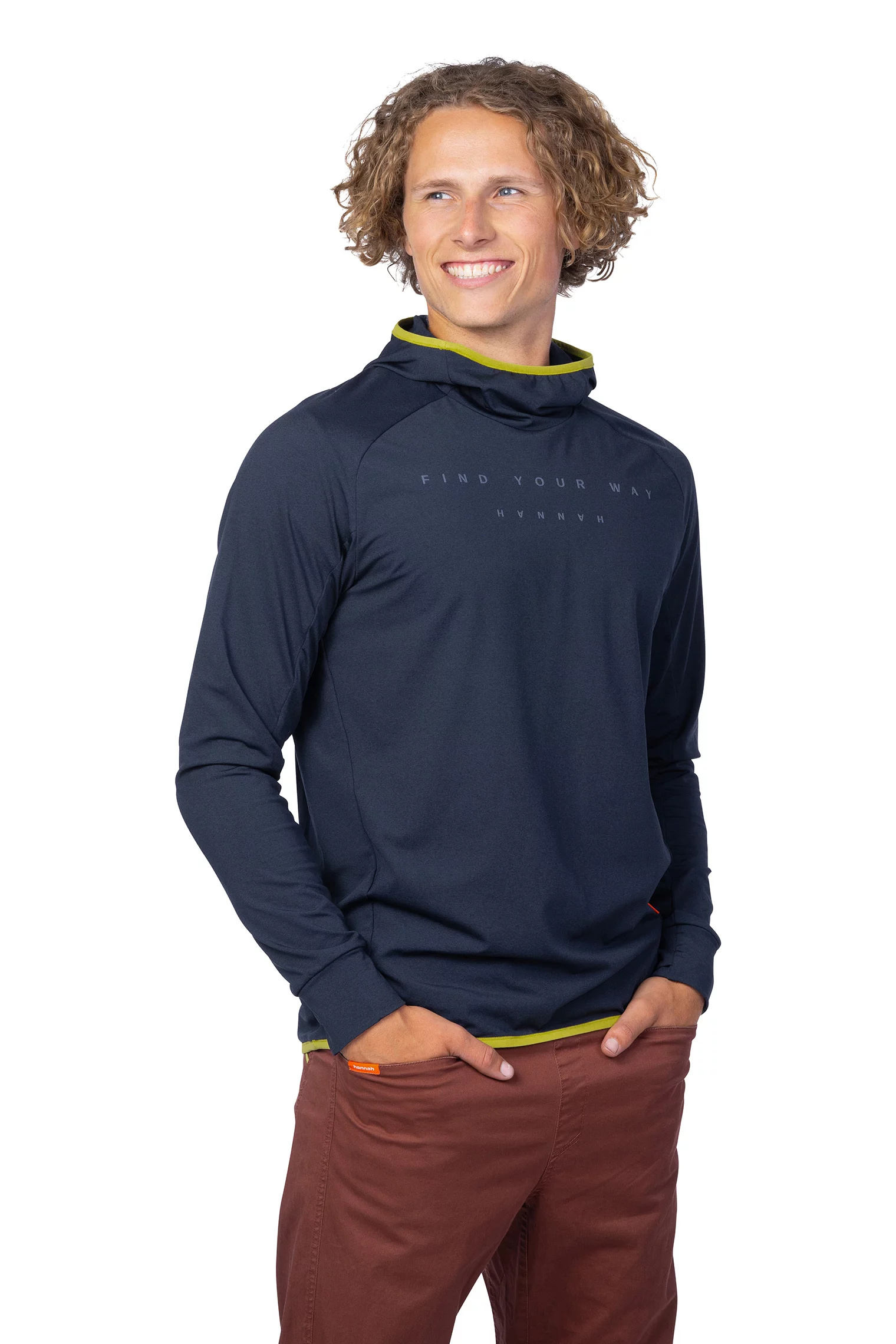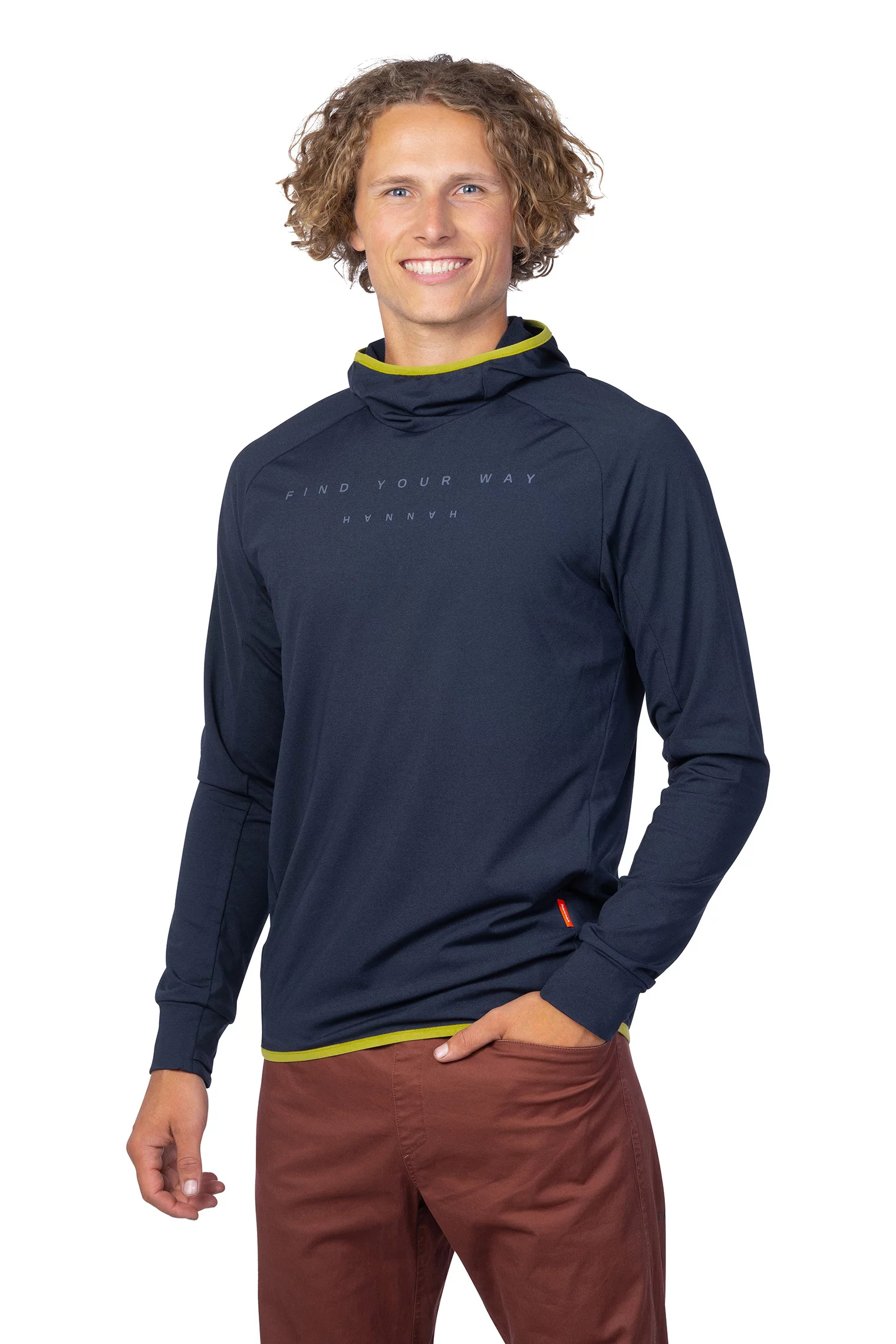 Sportovní střihově volnější mikina s technickými prvky. Materiál Polarstretch Lite je prodyšný, vysoce elastický ve všech směrech a lehký. Snadno se udržuje, rychle schne a má dlouhotrvající životnost včetně vysoké mechanické odolnosti. Širší stojáček kolem krku volně přechází do kapuce lemované gumou. Anatomicky tvarované rukávy jsou zakončené pružným lemem s otvorem na palec. Na zadní straně mikiny najdeš souřadnice domovského sídla Hannah, kde se rodí všechny naše nápady a styly, které tě provázejí na každém kroku. Mikina je ideální jako druhá izolační vrstva pro přechodné období outdoorových a sportovních aktivit.