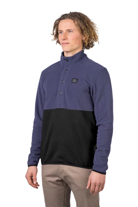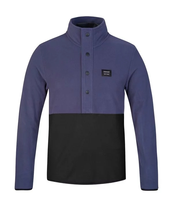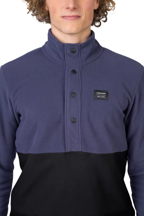 Mikina z jemného, elastického a hřejivého fleece materiálu Polarsoft Micro, který má zároveň nízkou hmotnost a dlouhotrvající životnost. Střih řešený přes hlavu, částečné zapínání mikiny na patentky, které přechází do zvýšeného komfortního stojáčku. Anatomicky tvarované rukávy a spodní okraj jsou lemované gumou. Retro design a barevné členění čerpá z původních kořenů značky Hannah.