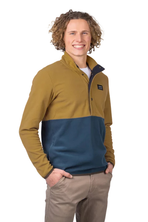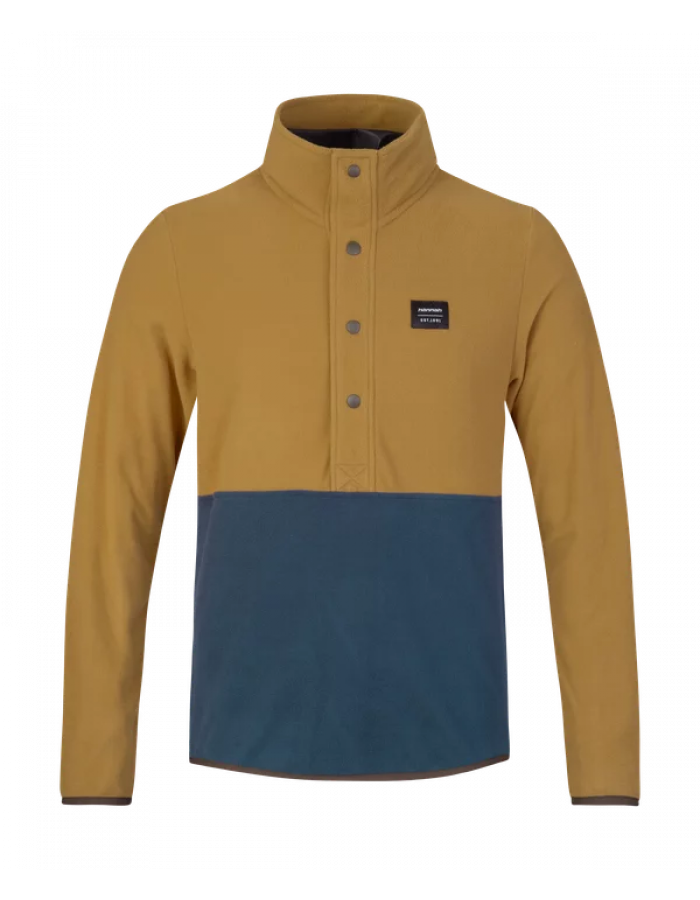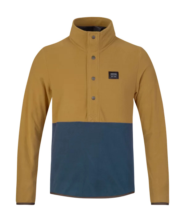 Mikina z jemného, elastického a hřejivého fleece materiálu Polarsoft Micro, který má zároveň nízkou hmotnost a dlouhotrvající životnost. Střih řešený přes hlavu, částečné zapínání mikiny na patentky, které přechází do zvýšeného komfortního stojáčku. Anatomicky tvarované rukávy a spodní okraj jsou lemované gumou. Retro design a barevné členění čerpá z původních kořenů značky Hannah.