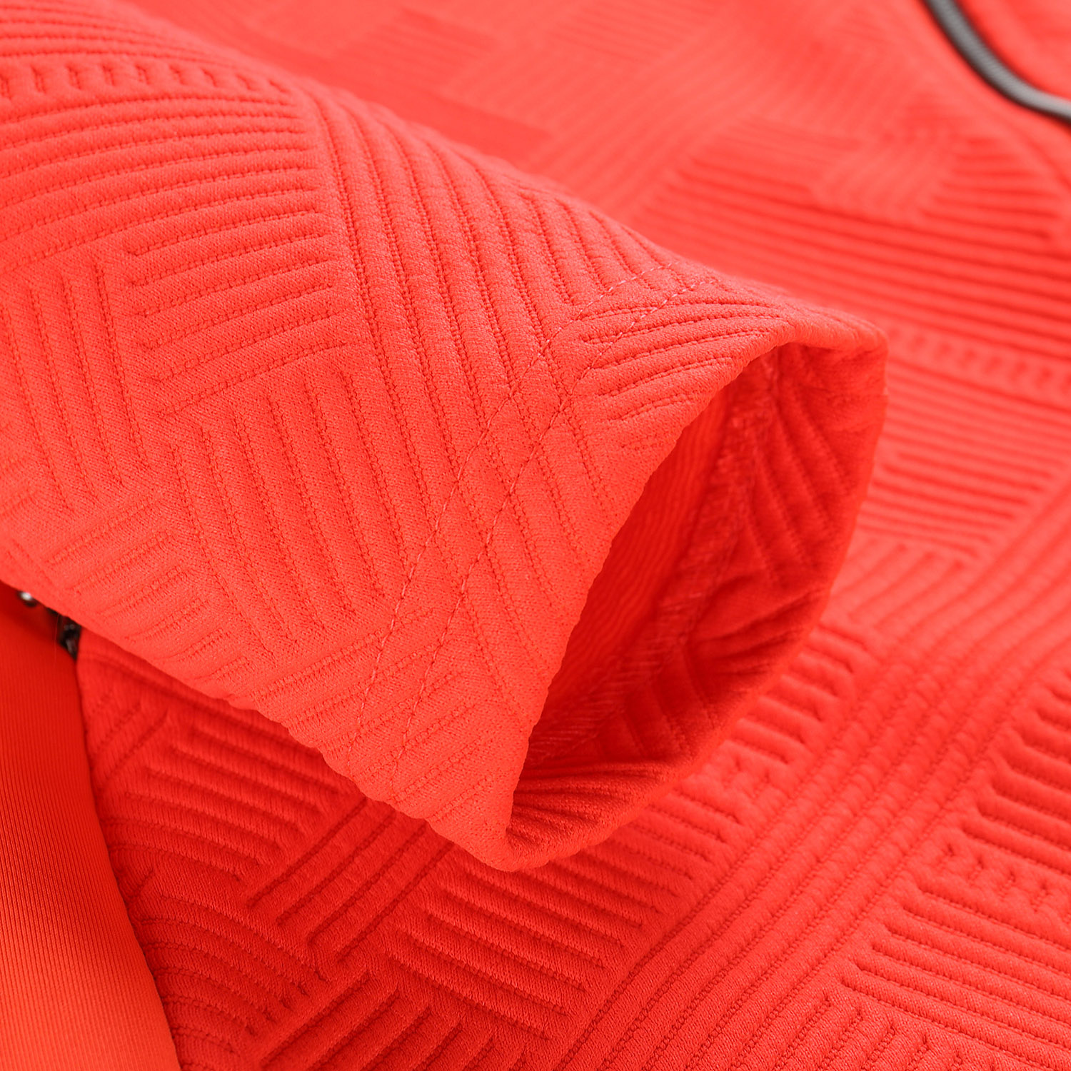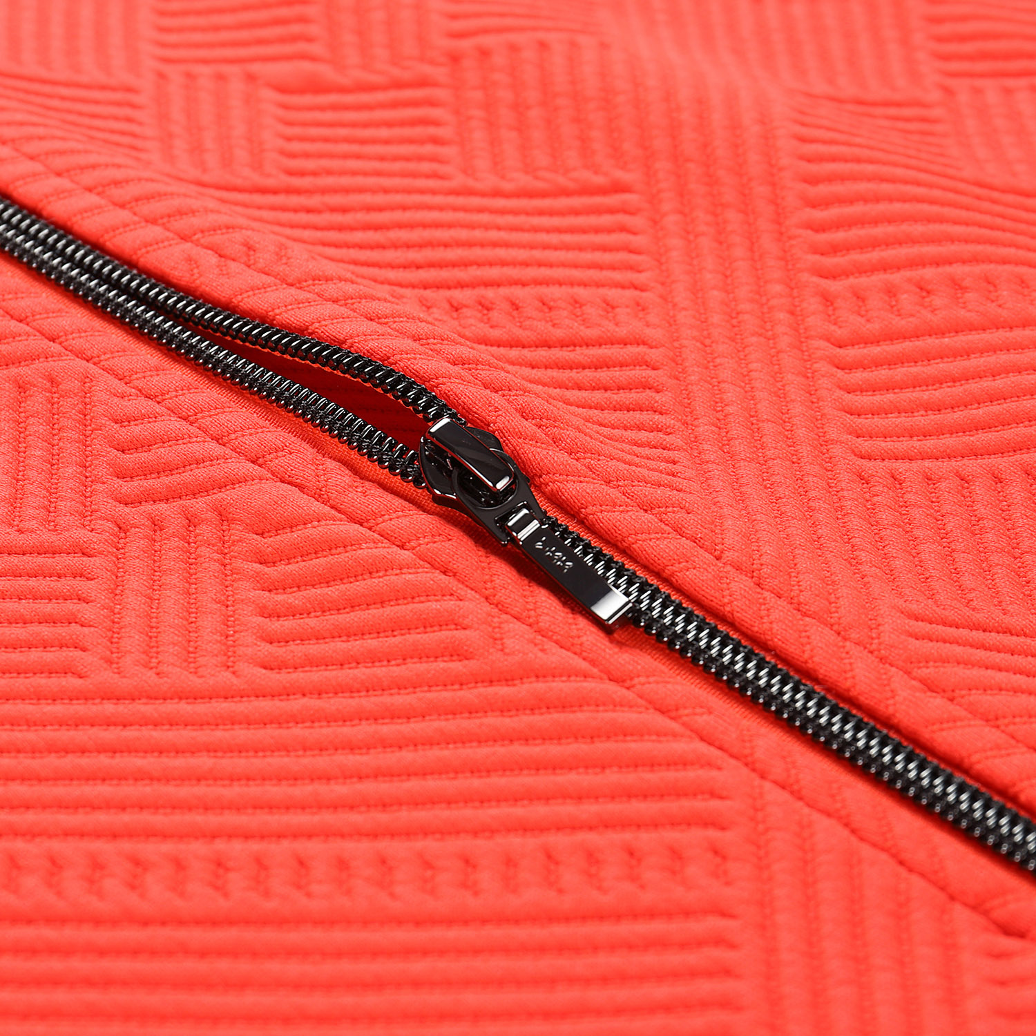 Polopřiléhavý střih sedí pohodlně, dlouhý kontrastní zip s krytkou u brady umožňuje snadné oblékání a komfort při nošení. Dvě přední kapsy na zip poskytnou prostor pro drobnosti a zároveň doplňují sportovní vzhled. Decentní potisk na předním dílu podtrhuje moderní a sportovně-elegantní charakter mikiny.