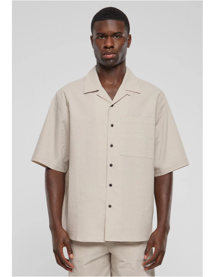 Uvolněná košile Seersucker s krátkým rukávem je perfektní volbou pro uvolněný, ale stylový vzhled. Tato ležérní košile s krátkým rukávem od Urban Classics se vyznačuje moderním klopovým límcem a praktickou náprsní kapsou. Spadlá ramena zdůrazňují ležérní charakter košile a nabízejí další pohodlí. Vyrobeno z příjemné, lehké bavlněné tkaniny, je ideální pro teplé dny a různé příležitosti. Ať už jde o neformální setkání s přáteli nebo uvolněný den v kanceláři, monochromatický design této košile z ní dělá všestranný doplněk každého pánského šatníku.