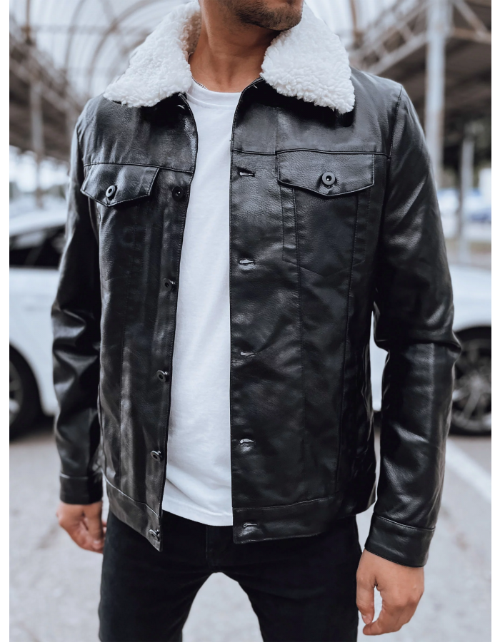 Pánská syntetická kožená bunda černá