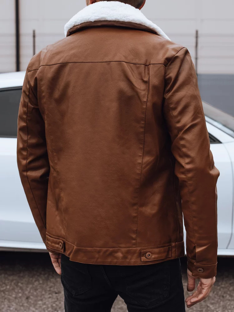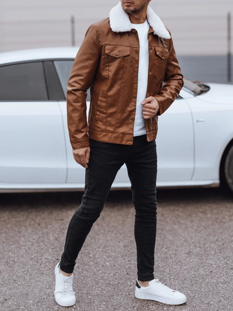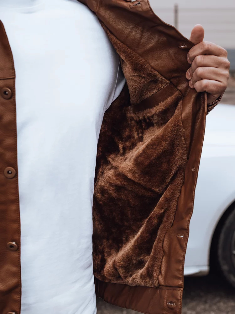 Pánská kožená bunda s kožešinou hnědá Dstreet TX4746
