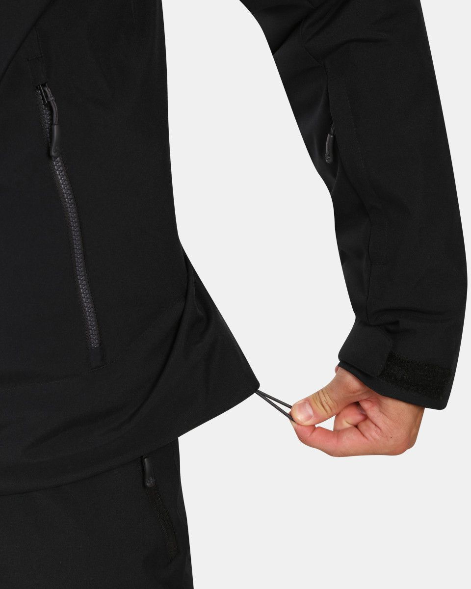 - Spodní lem je možno stáhnout gumičkou a lemy rukávů lze utáhnout suchým zipem.