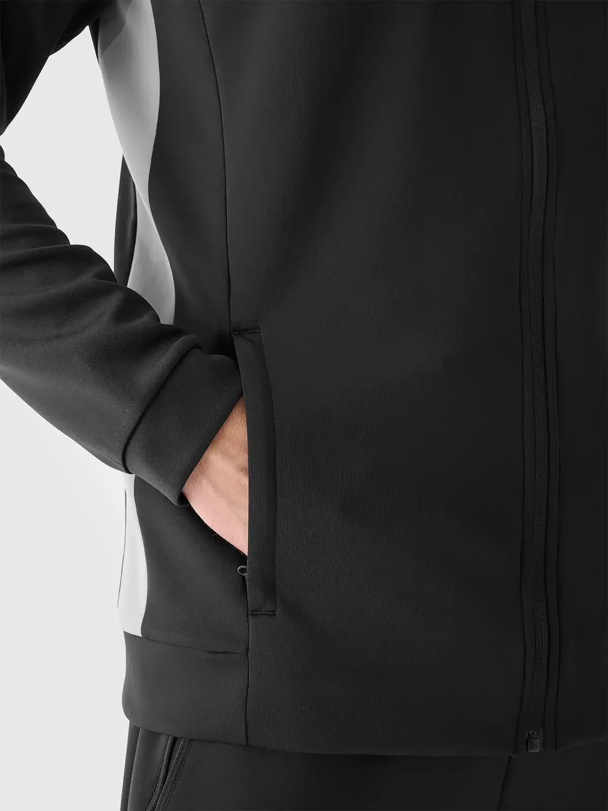 Pánská sportovní rozepínací mikina je vyrobena ze syntetického materiálu, který zajišťuje odolnost a snadno se udržuje. Díky přídavku elastanu (5%) je elastická a pohodlně sedí na postavě.