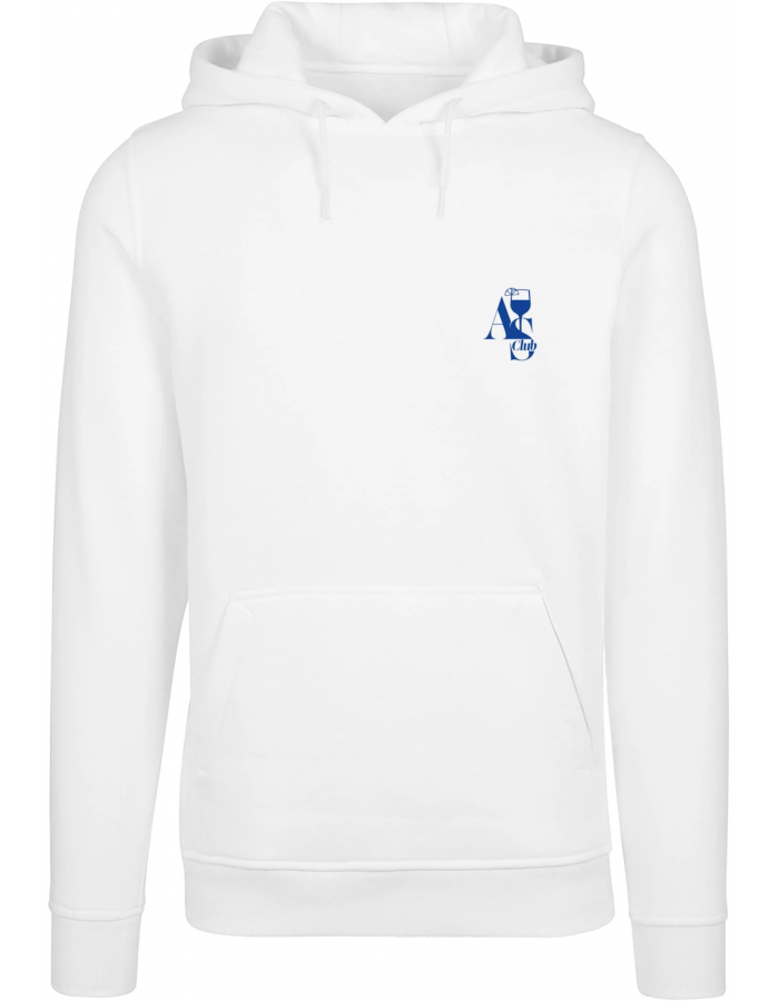 Tato mikina je bílá s minimalistickým designem. Na přední straně vlevo na hrudi se nachází malý modrý nápis "AS Club" stylizovaný do elegantního písma, které je doplněno malým obrázkem skleničky s drinkem. Na zadní straně mikiny je velký potisk stejného nápisu "AS Club", který je tentokrát doplněn výrazným obrázkem sklenice s oranžovým drinkem plným ledu a ozdobeným plátkem pomeranče. Pod sklenicí je položený půlku pomeranče a zelený list. Design je laděn do modré a oranžové barvy, což vytváří stylový a svěží vzhled této mikiny.