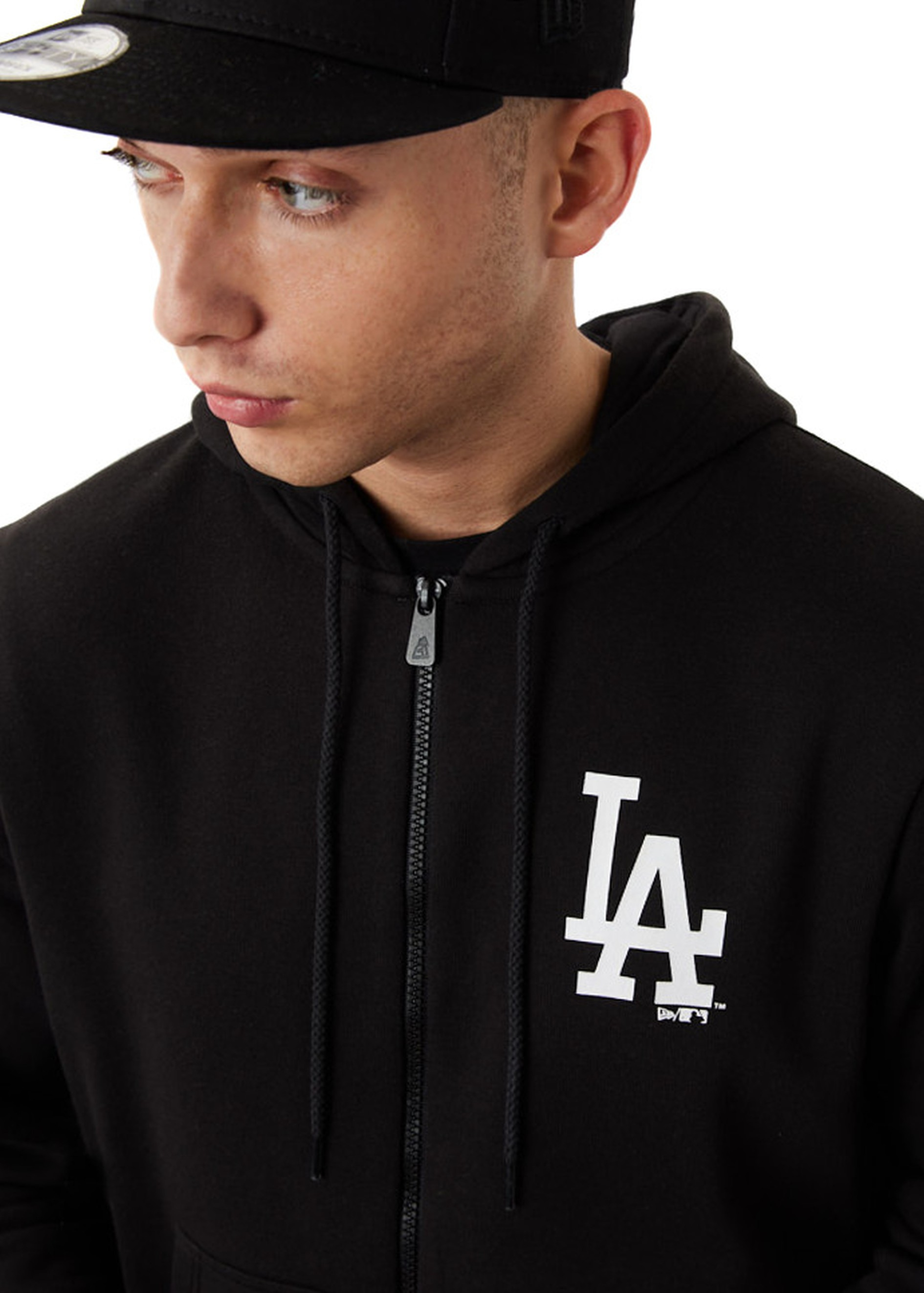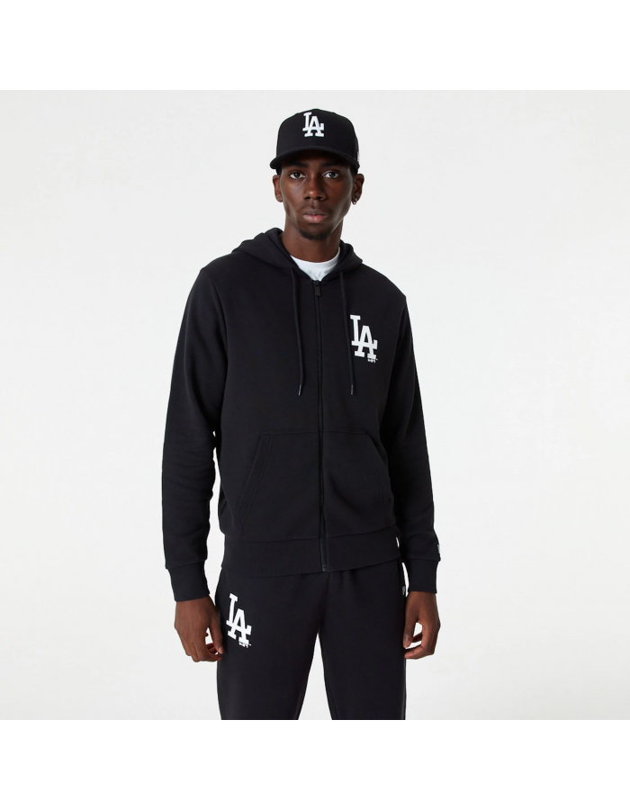 Klasická černá mikina na zip s kapucí, zdobená ikonickým logem Los Angeles Dodgers na hrudi. Nabízí pohodlí a sportovní styl vhodný pro volný čas i podporu oblíbeného týmu. Ideální pro každodenní nošení, sportovní události, cestování a volnočasové aktivity.