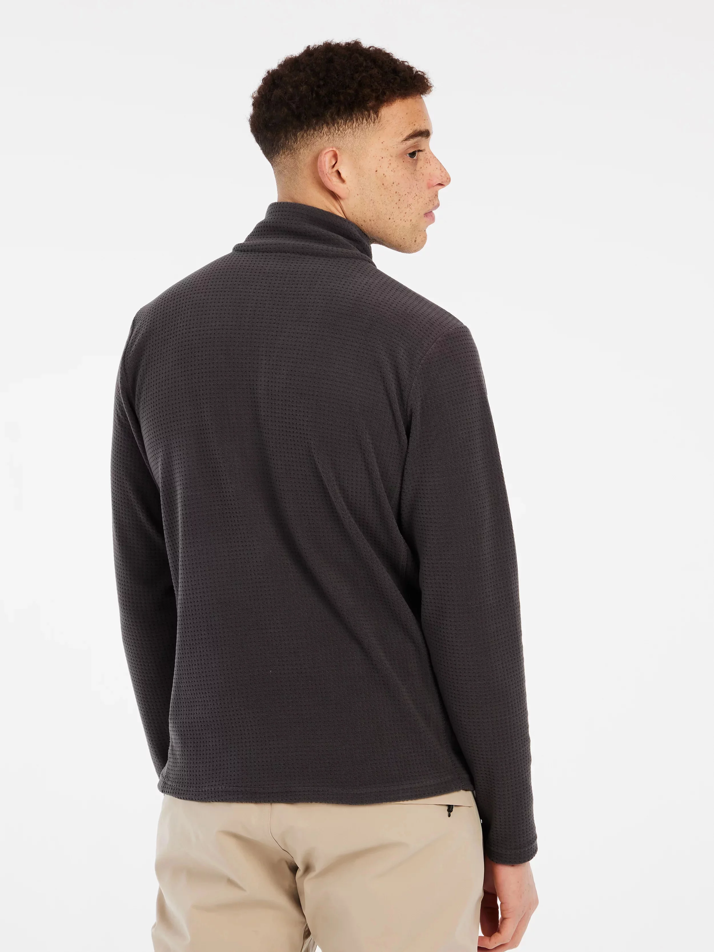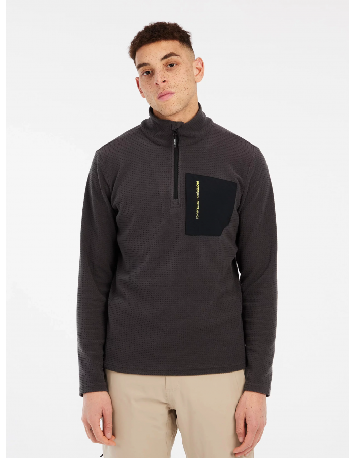 Tento stylová a pohodlná mikina má kapsu na hrudi a čtvrtinový zip a je vyrobena z elastického tkaného materiálu typu waffle jacquard.