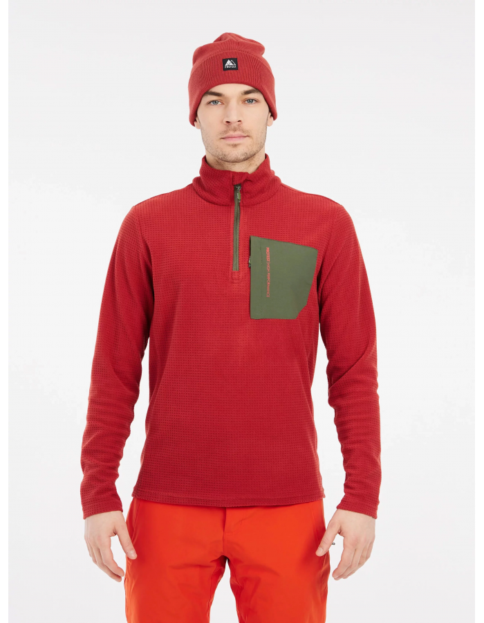 Tento stylová a pohodlná mikina má kapsu na hrudi a čtvrtinový zip a je vyrobena z elastického tkaného materiálu typu waffle jacquard.