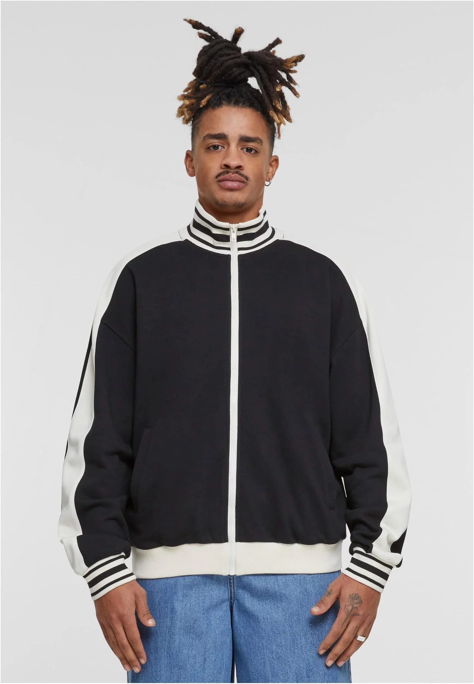 Retro Track Jacket je stylovou poctou tréninkové módě minulých desetiletí. Kombinuje klasický retro vzhled s moderními prvky. Nápadný stojáček a pruhované žebrované manžety a lem vytvářejí autentický vintage styl, zatímco jednobarevné provedení s kontrastními pásky na rukávech dodává designu současný nádech. Praktický zip usnadňuje oblékání a svlékání a dělá z této tréninkové bundy všestranného společníka - ať už na sportovní aktivity nebo jako ležérní outfit na každodenní nošení.