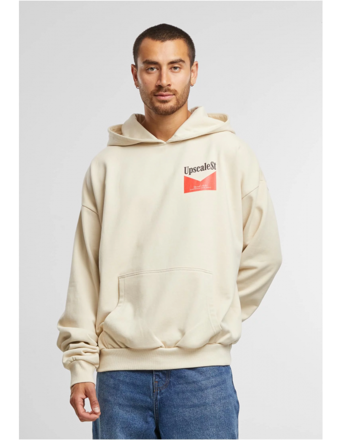 Tato mikina s kapucí má moderní a odvážný design. Na přední straně je malý nápis "UpscaleSt". Zadní strana mikiny je výrazněji zdobená – dominuje zde velký nápis "Live Bold" nad černobílým obrázkem jezdce na koni. Pod tímto motivem je text „Live tough, push hard, exceed every line“, který dodává mikině inspirativní nádech. Tento design je ideální pro ty, kteří chtějí vyjádřit sebevědomí a odhodlání prostřednictvím svého oblečení.