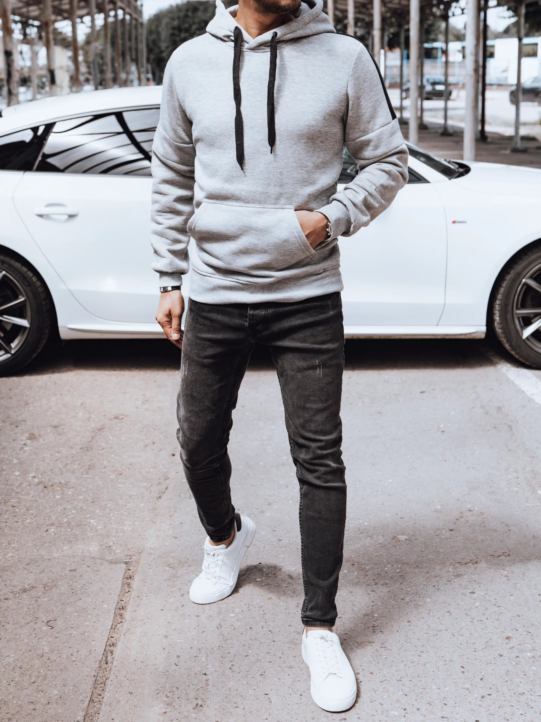 Pánská mikina s kapucí světle šedá Dstreet BX5829 XXL