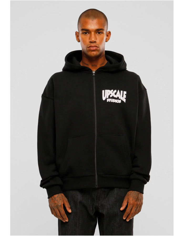 Bunda ZIP od Upscale Studios s výrazným předním potiskem je klíčovým kouskem každého šatníku. Mikina je také velmi příjemná na nošení.