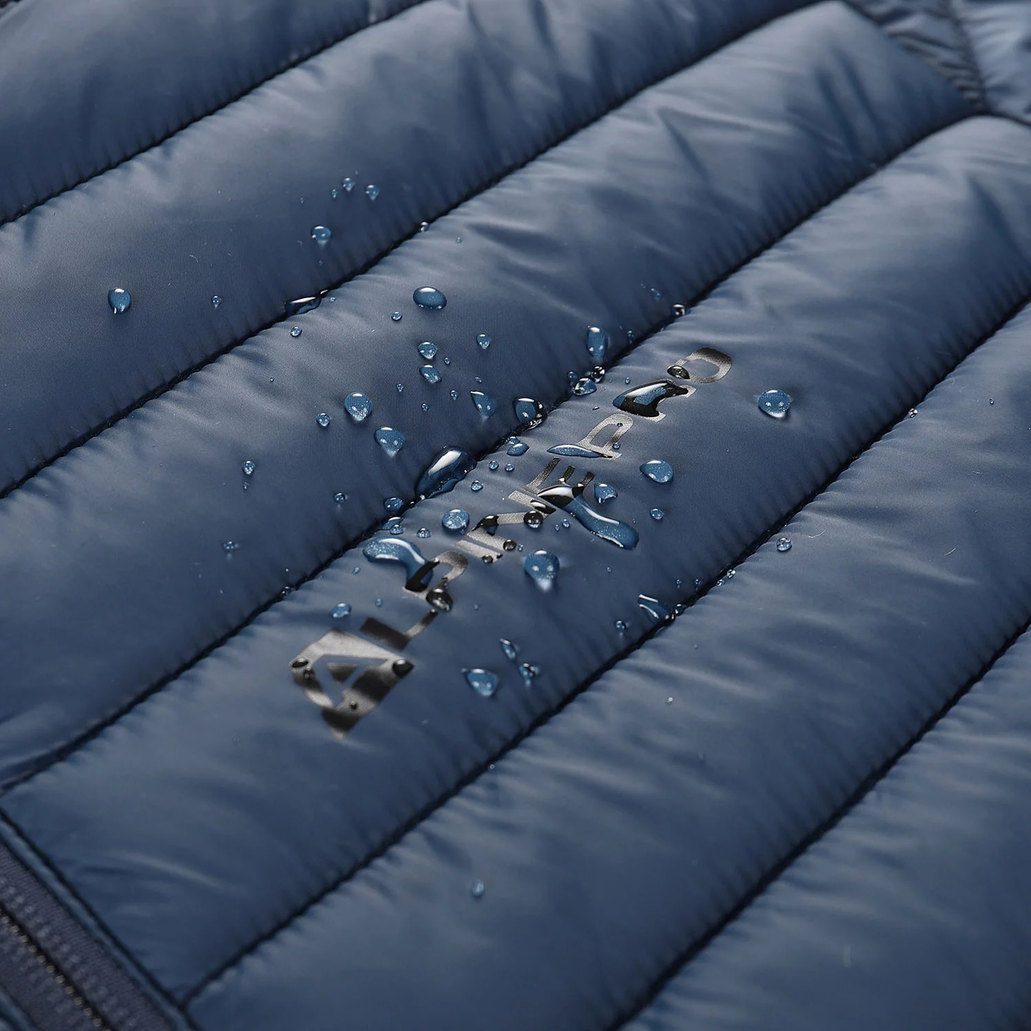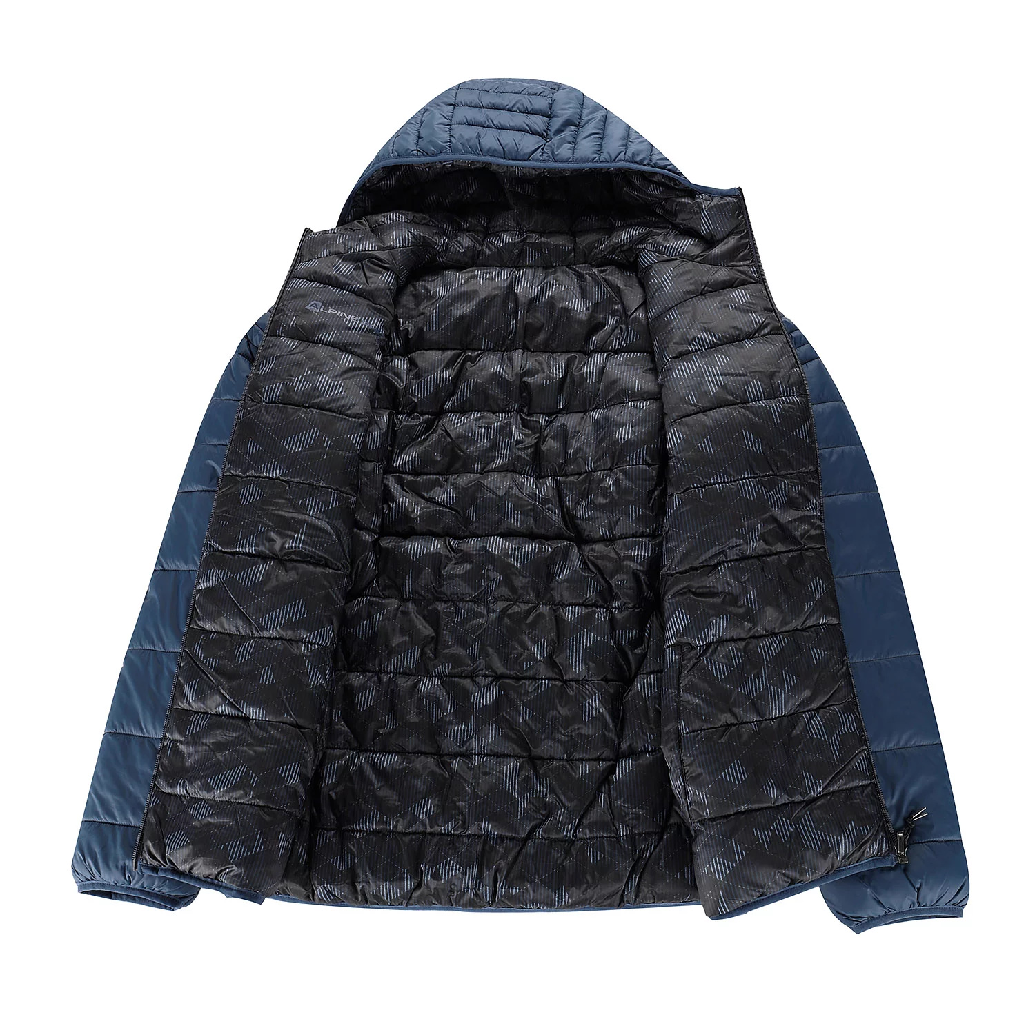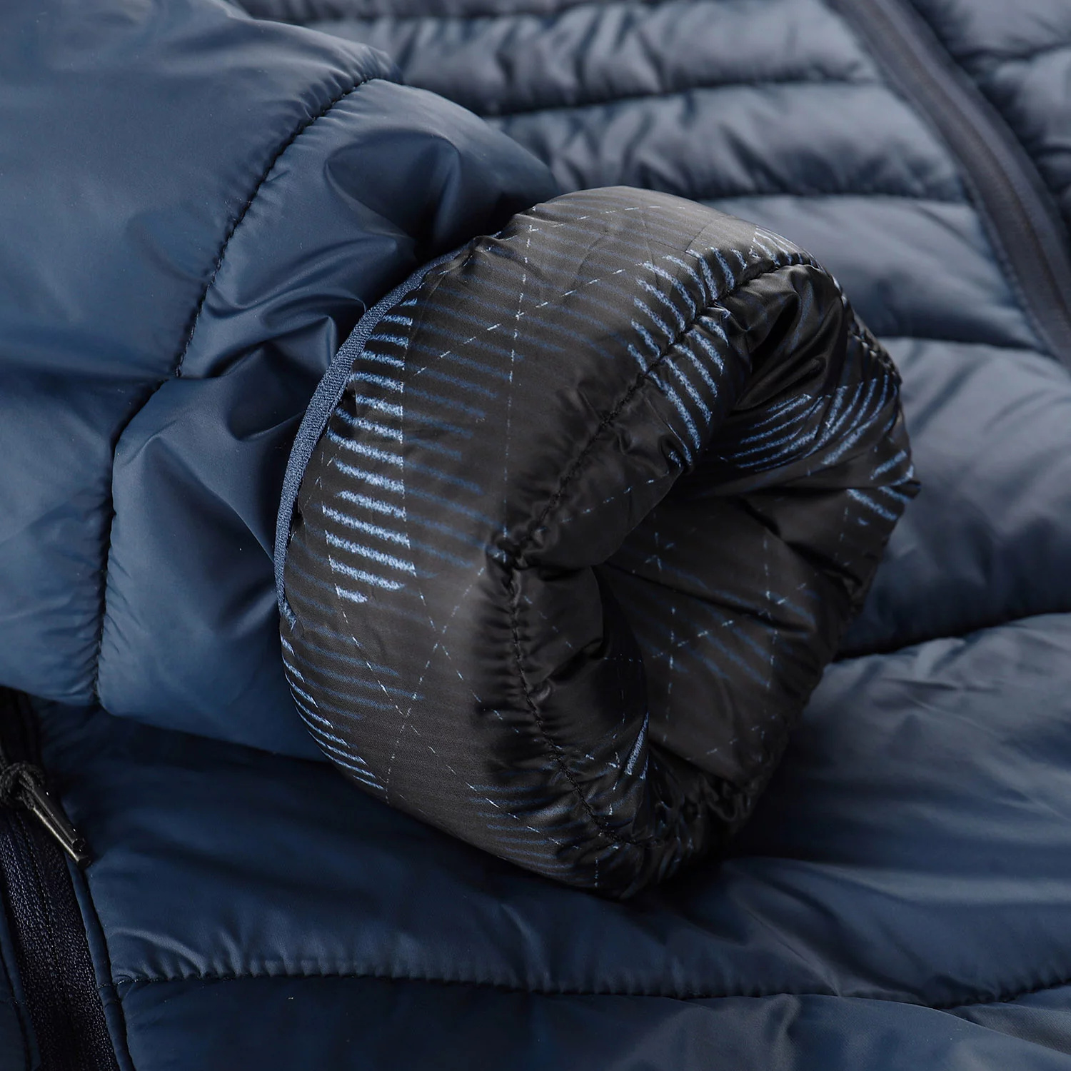 Lehká, hřejivá výplň a kontrastní prošívaná podšívka udržují teplo a zajišťují komfort i v chladném počasí. Praktické detaily jako kapuce, rukávy a spodní lem s gumičkou zamezují posunu bundy, zatímco krytka brady, čtyři kapsy a prodloužené taháčky na zipech usnadňují každodenní nošení.