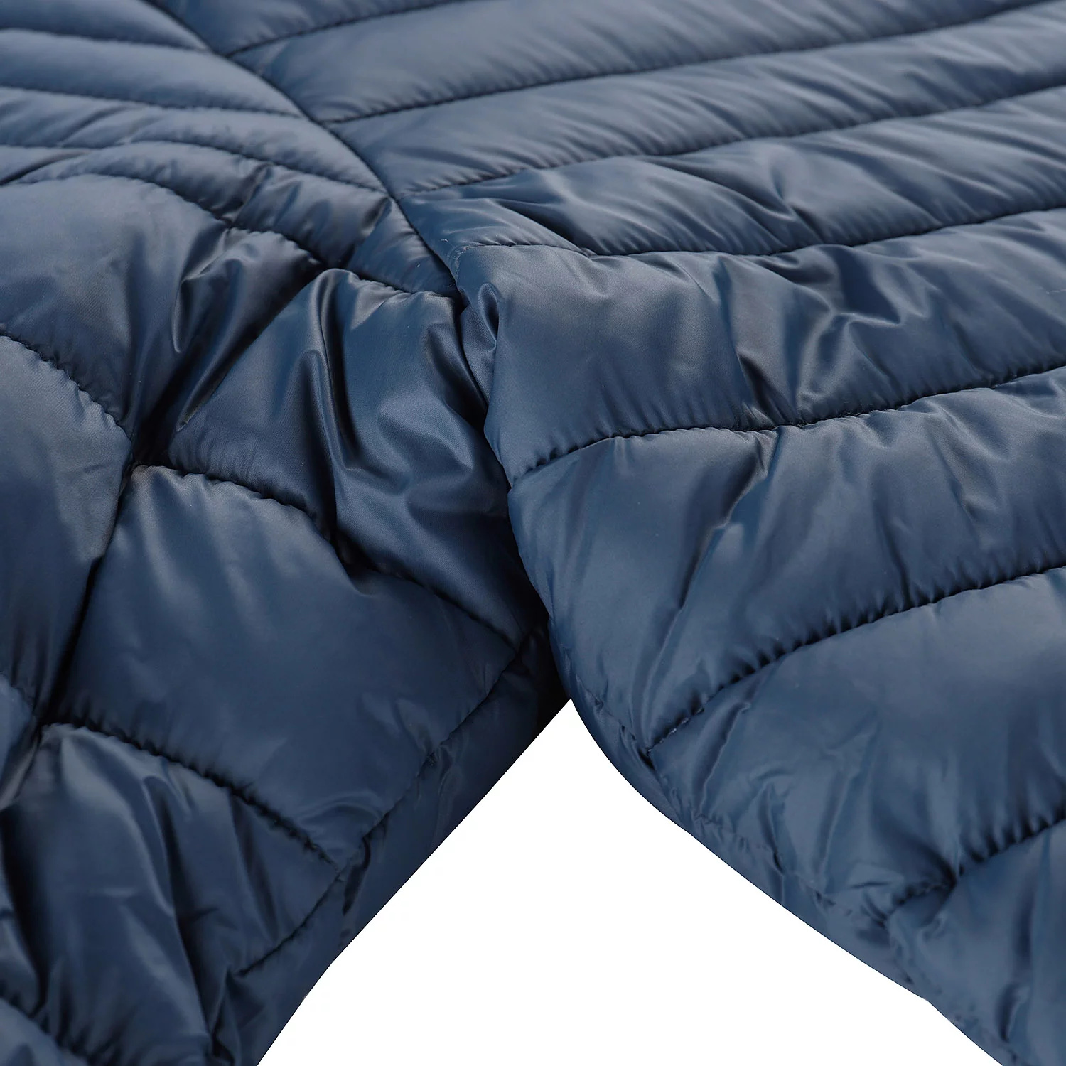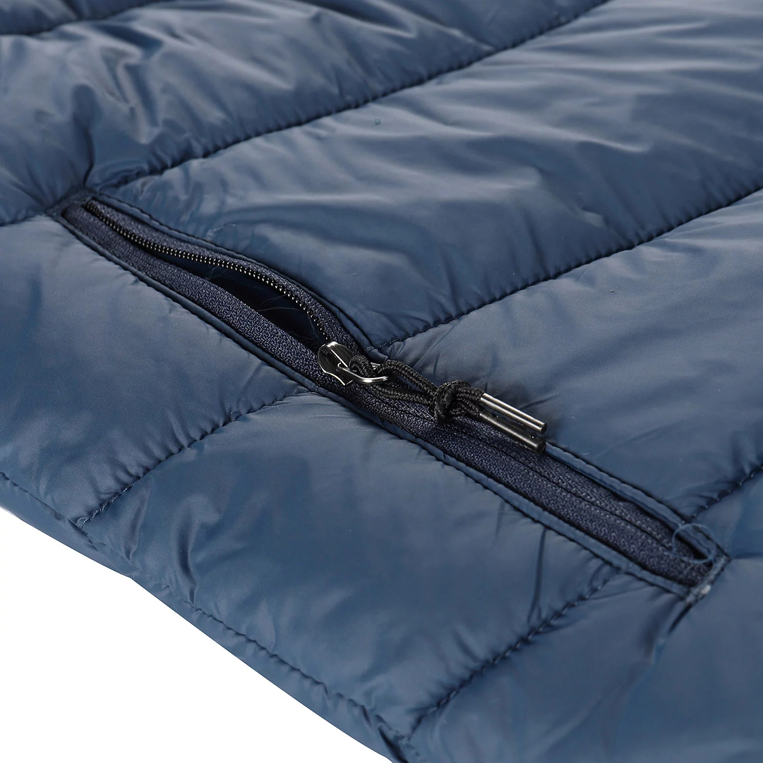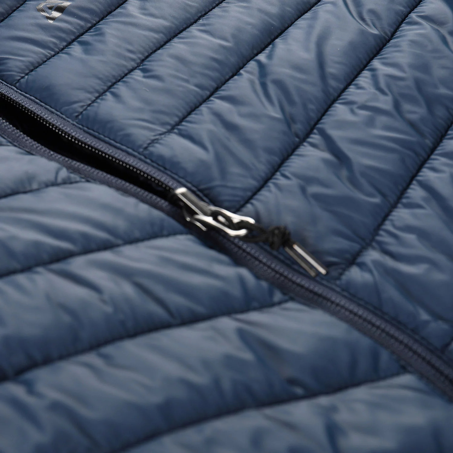 Lehká, hřejivá výplň a kontrastní prošívaná podšívka udržují teplo a zajišťují komfort i v chladném počasí. Praktické detaily jako kapuce, rukávy a spodní lem s gumičkou zamezují posunu bundy, zatímco krytka brady, čtyři kapsy a prodloužené taháčky na zipech usnadňují každodenní nošení.