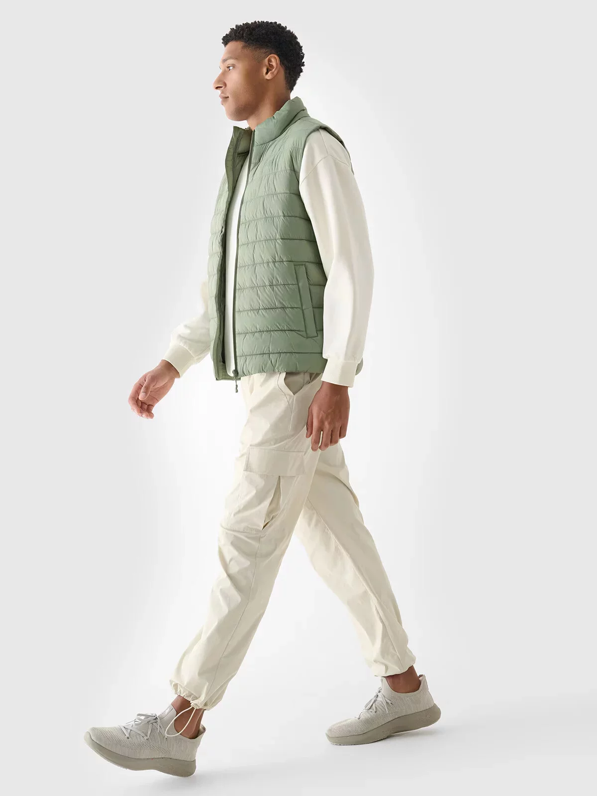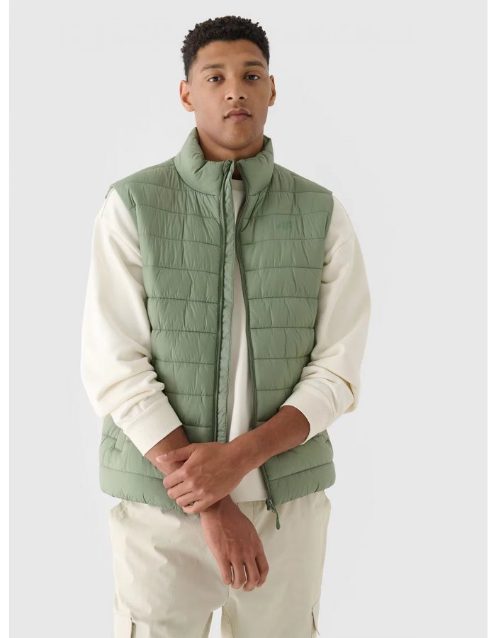 Pánská péřová vesta se stojáčkem a lehkou konstrukcí, díky čemuž ji můžete nosit během každodenních i sportovních aktivit v teplejších dnech v přechodném období.