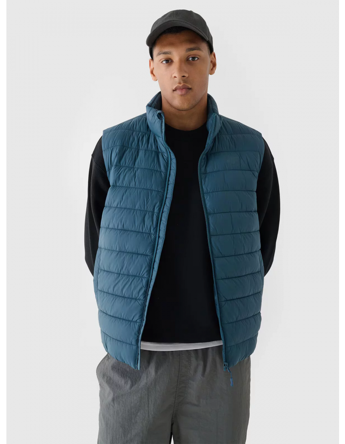 Pánská péřová vesta se stojáčkem a lehkou konstrukcí, díky čemuž ji můžete nosit během každodenních i sportovních aktivit v teplejších dnech v přechodném období.