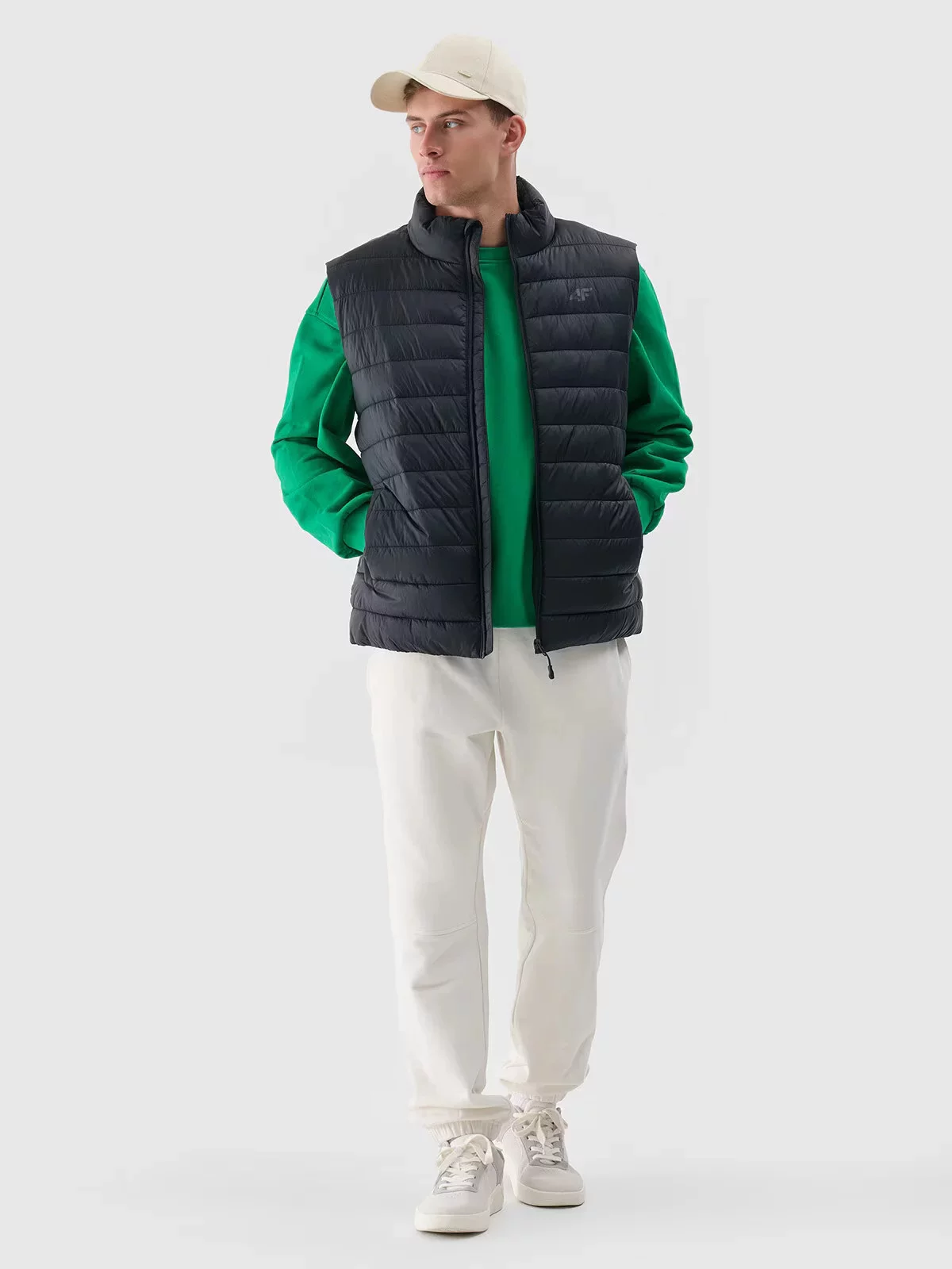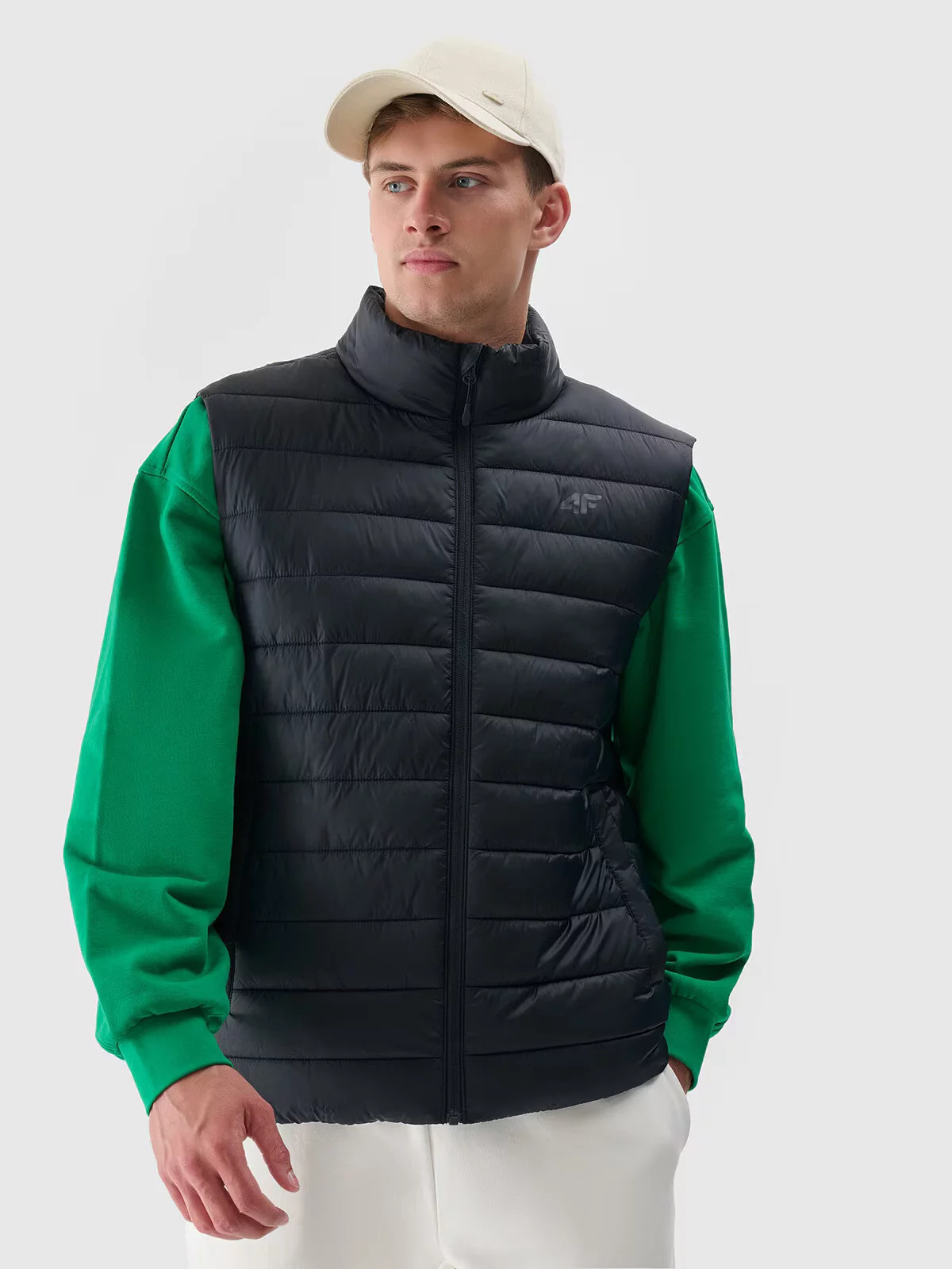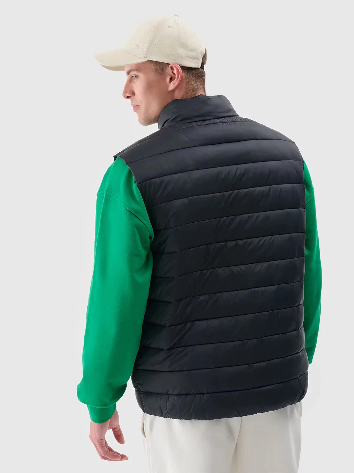Pánská péřová vesta se stojáčkem a lehkou konstrukcí, díky čemuž ji můžete nosit během každodenních i sportovních aktivit v teplejších dnech v přechodném období.