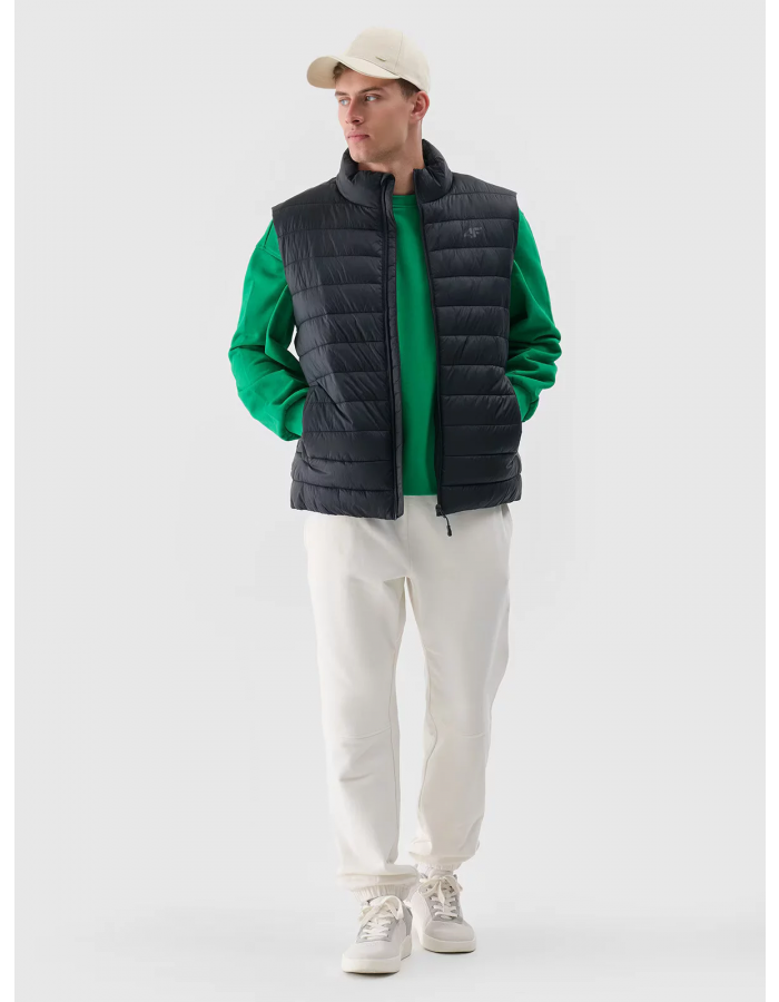 Pánská péřová vesta se stojáčkem a lehkou konstrukcí, díky čemuž ji můžete nosit během každodenních i sportovních aktivit v teplejších dnech v přechodném období.
