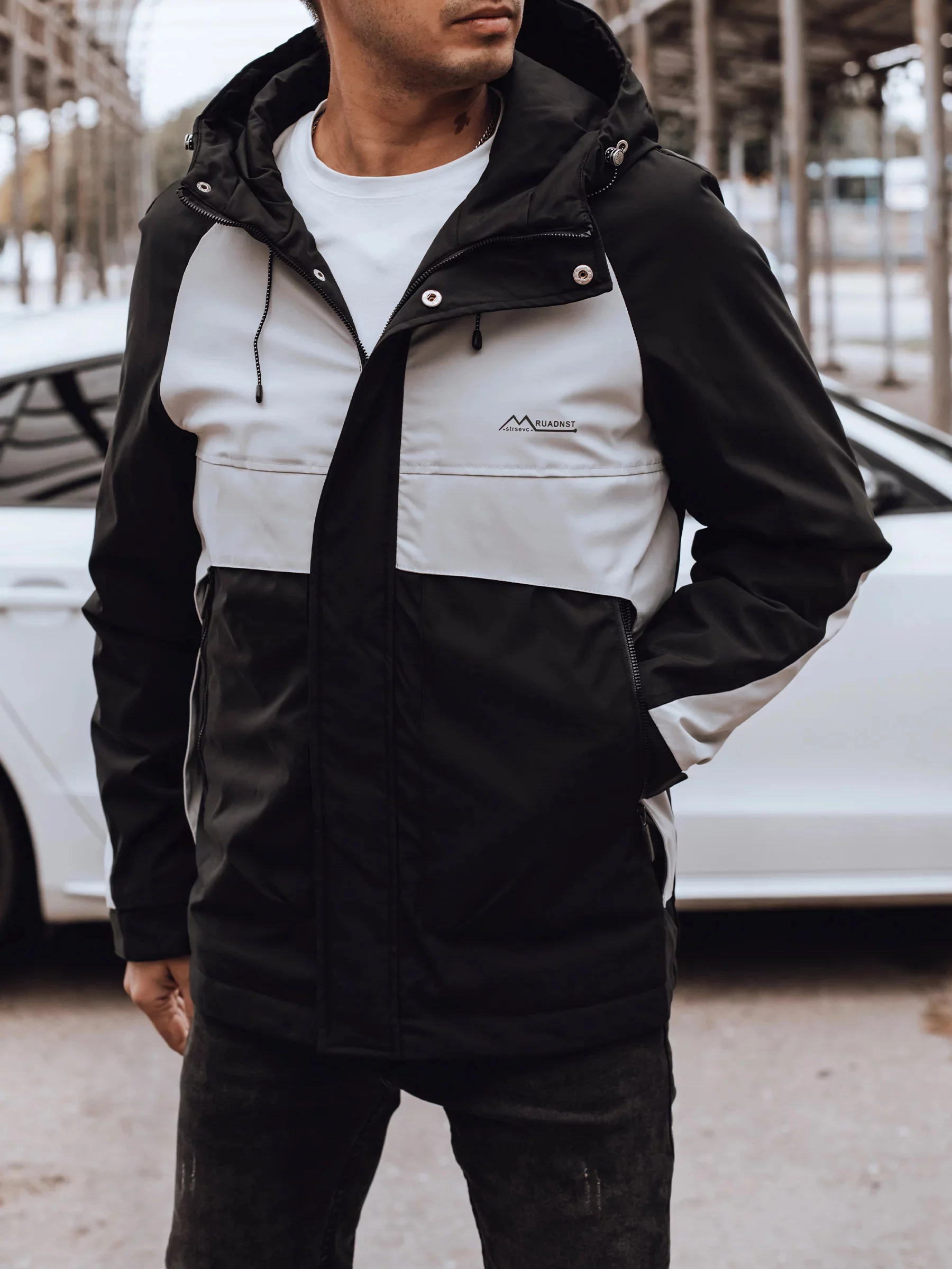 Pánská přechodová nepromokavá bunda černo-šedá Dstreet TX4916