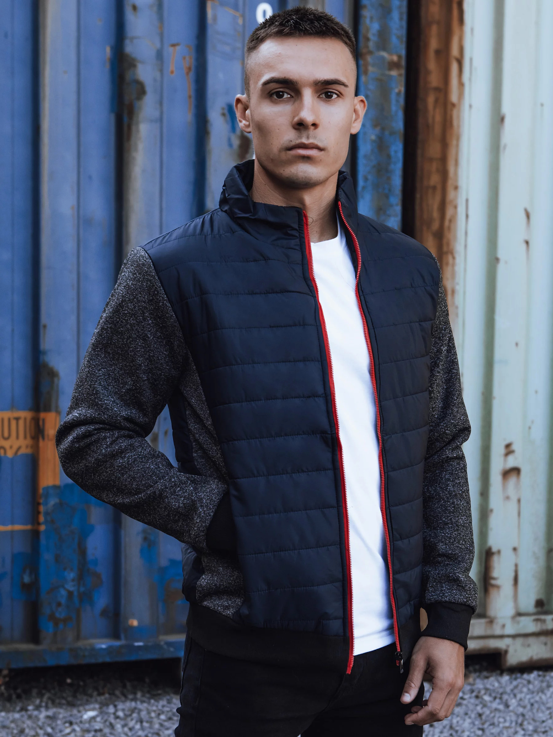 - Pánská přechodová prošívaná bunda bez kapuce.