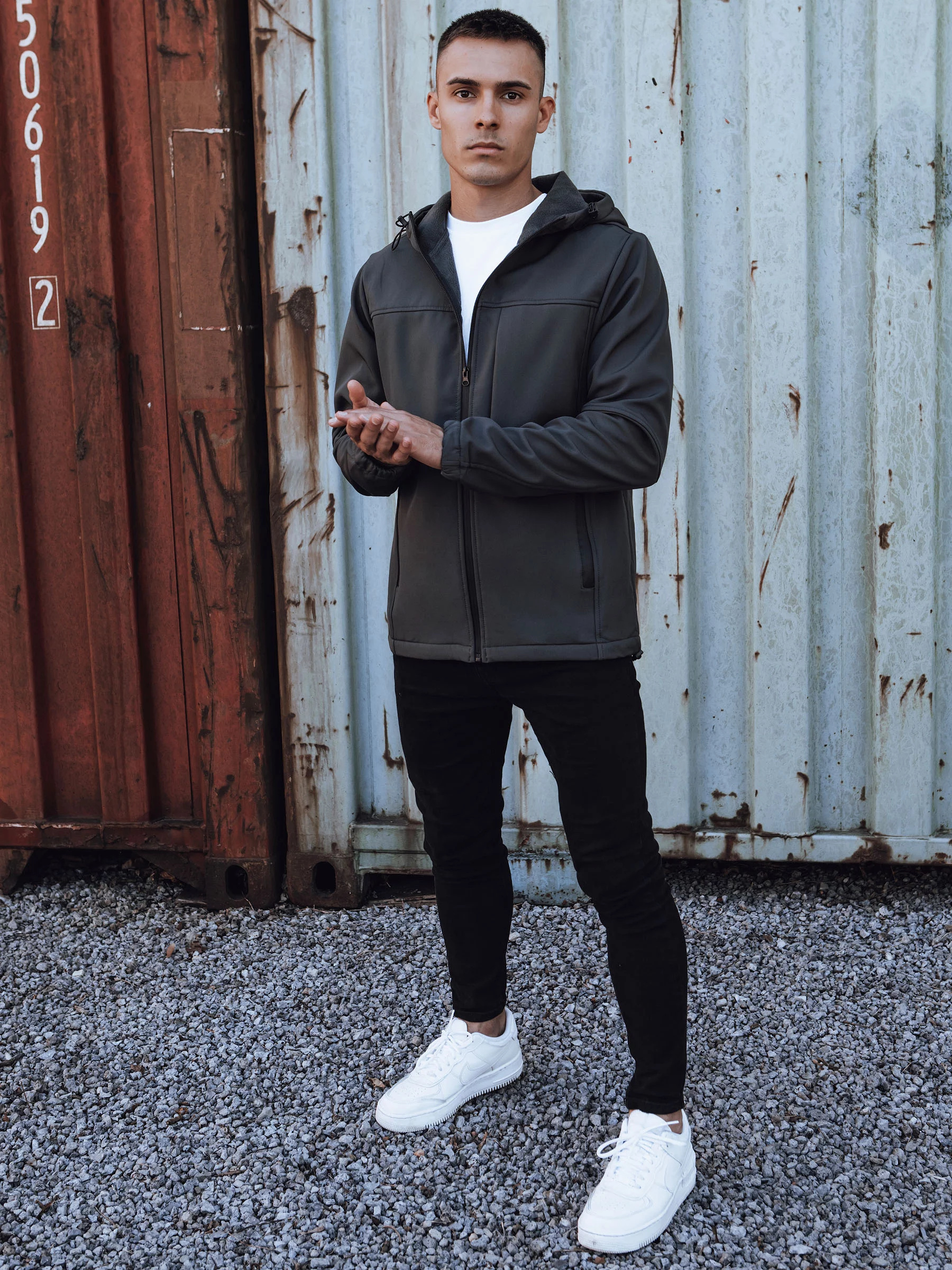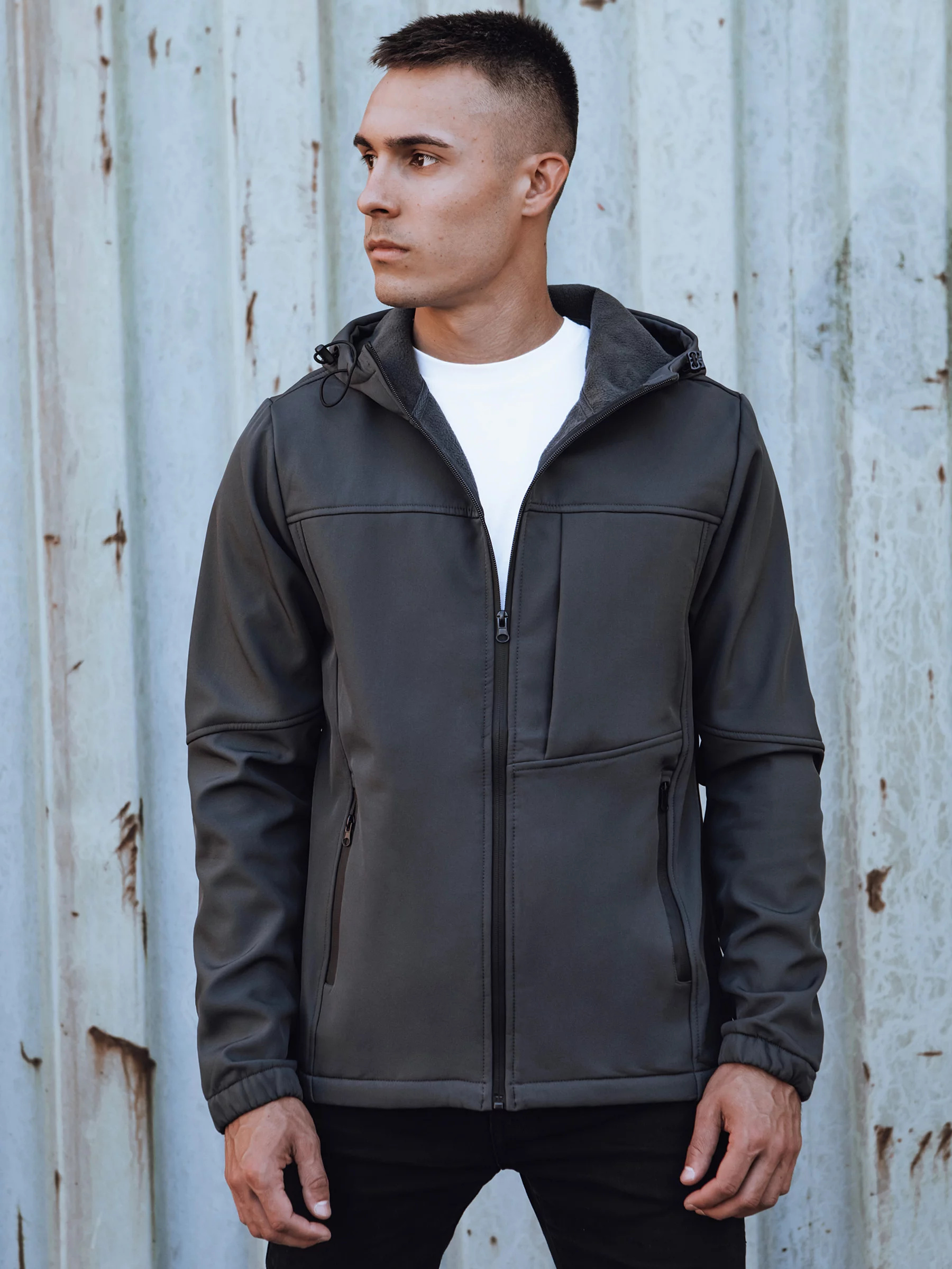 Pánská přechodová softshellová bunda s kapucí tmavě šedá Dstreet TX4816