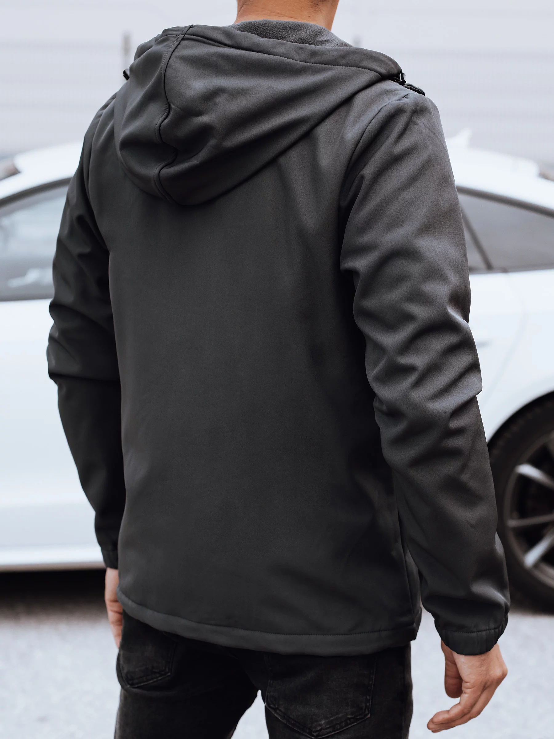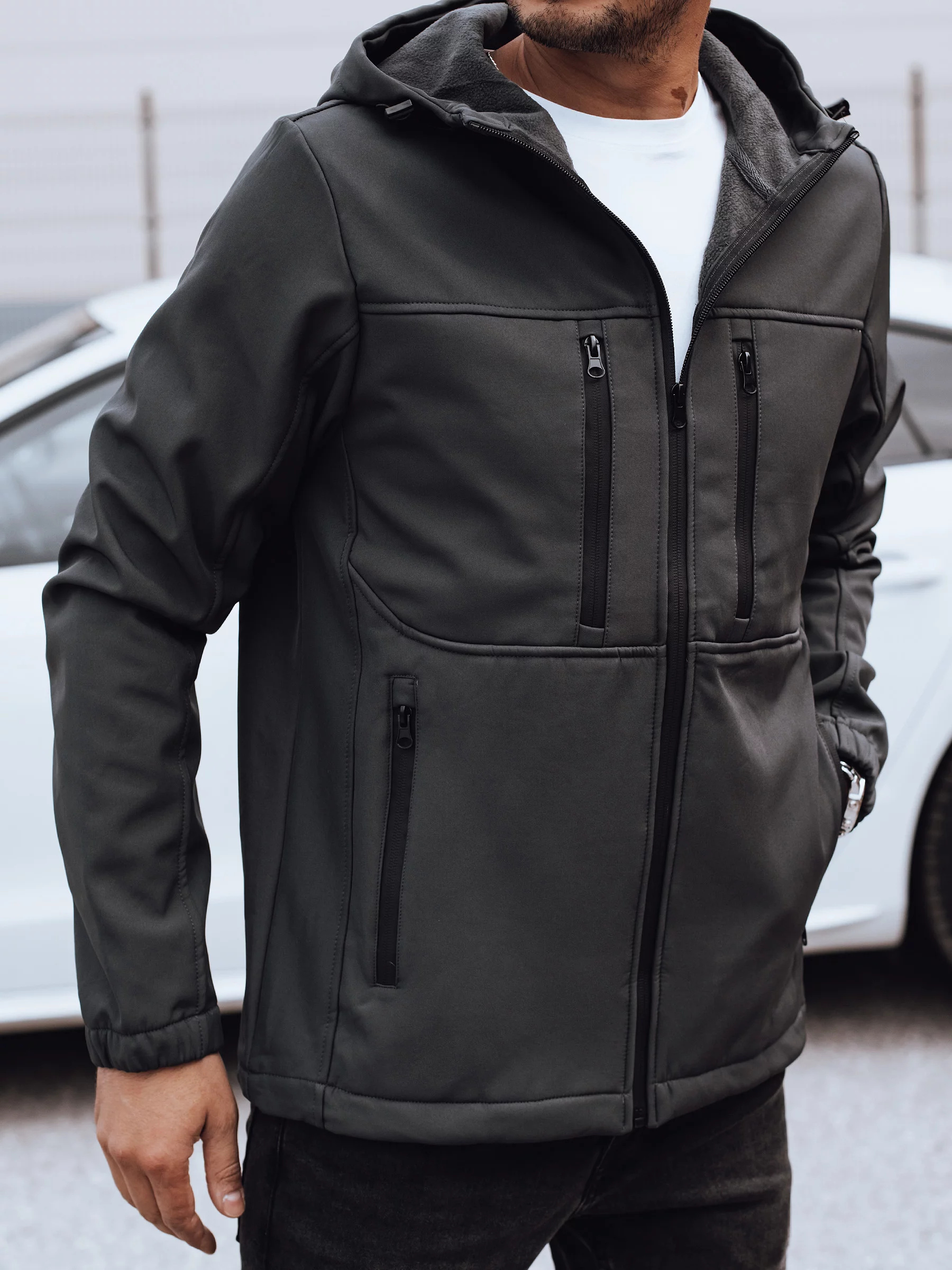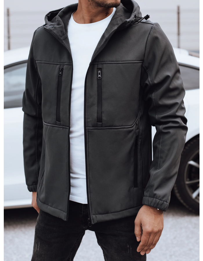 Pánská přechodová softshellová bunda s kapucí tmavě šedá Dstreet TX4817