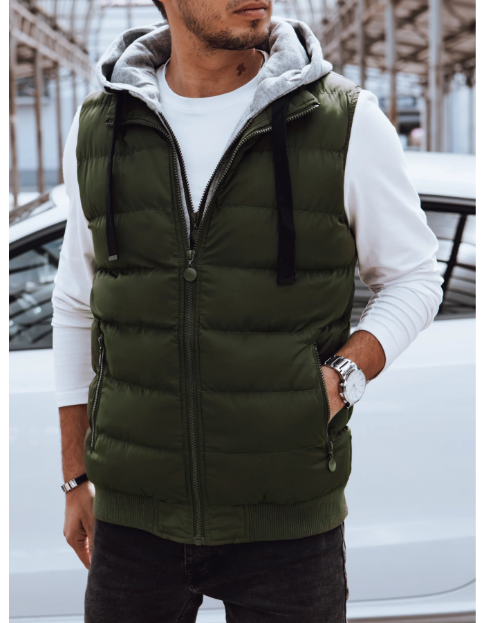 Pánská prošívaná vesta tmavě zelená Dstreet TX4784