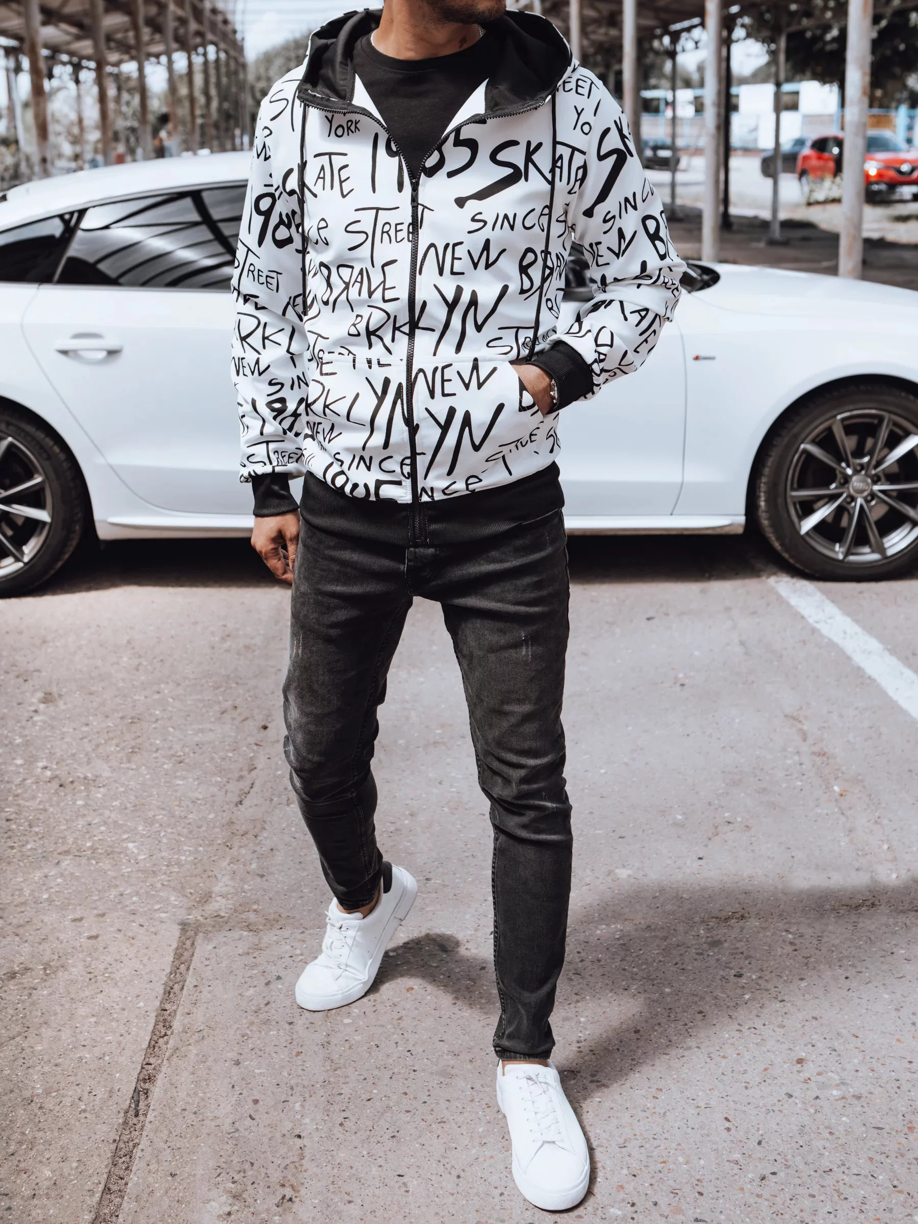 Pánská rozepínací mikina s kapucí bílá Dstreet BX5788